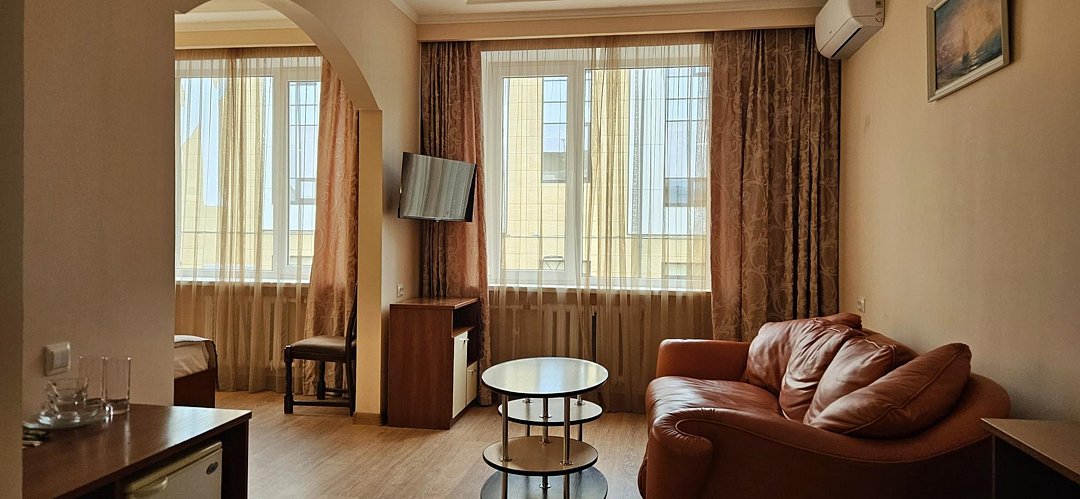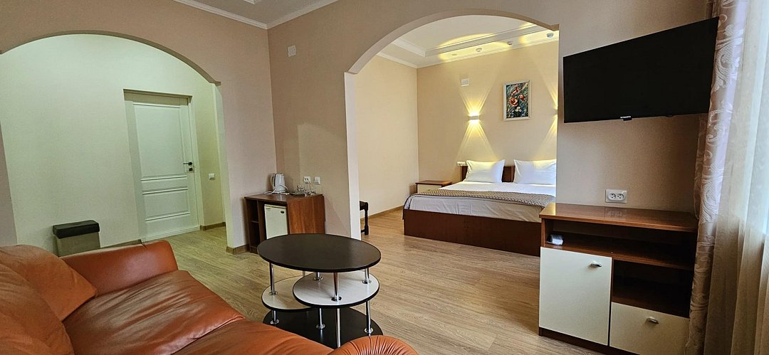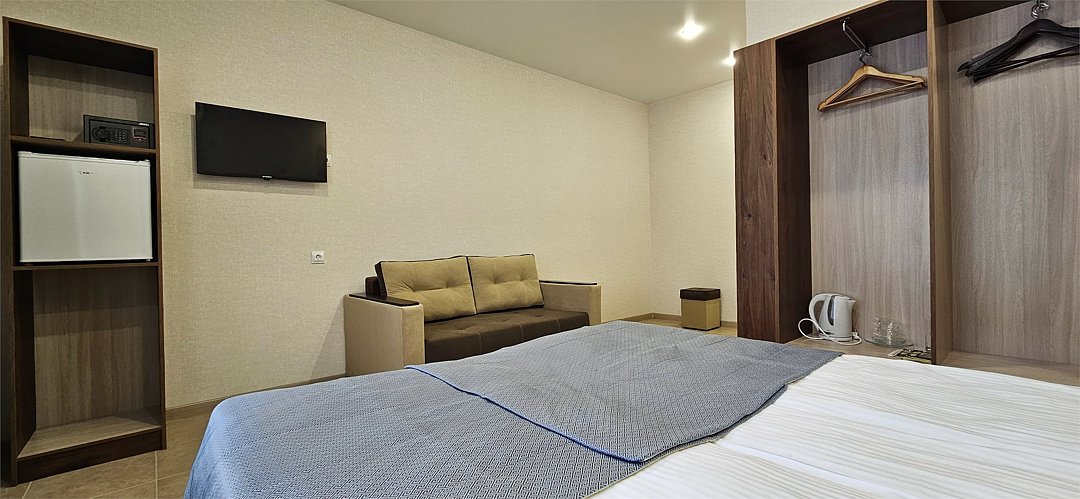 Номер категории Улучшенный имеет большую площадь и оснащен двуспальной кроватью и диваном. Имеется возможность размещение троих человек. Идеально подойдет для вашего комфортного пребывания.Услуги и удобства