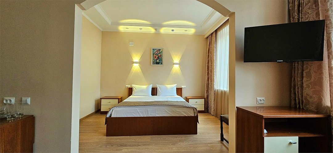 Добро пожаловать в отель Крым – современный трехзвездочный отель, расположенный в живописном городе-курорте Кисловодске. Наш отель открылся в 2025 году после полной реновации и идеально подходит для тех, кто ценит комфорт, качество обслуживания и удобное расположение. Отель Крым находится в самом центре города, рядом с центральным рынком, где хорошо развита транспортная инфраструктура. Всего в нескольких минутах ходьбы от нас находятся главные достопримечательности Кисловодска: знаменитый Курортный бульвар (всего 10 минут пешком!), Комсомольский парк и Старое озеро. Благодаря такому расположению, наши гости смогут насладиться всеми прелестями курорта, не тратя много времени на дорогу.