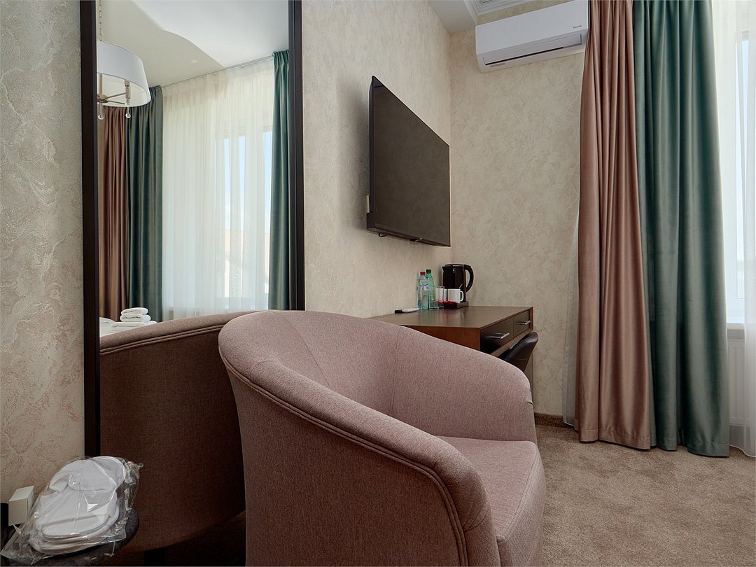 Большой двухкомнатный номер на 2-4 персоны с шикарным видом на Кавказские горы, удобным рабочим местом и расслабляющей зоной для отдыха.Услуги и удобства