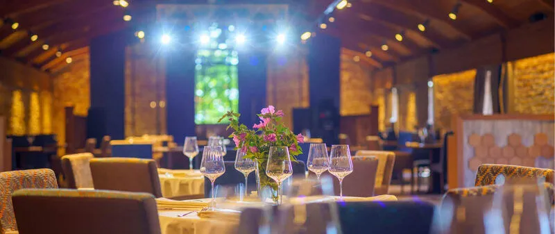 Внутри ресторана 70 посадочных мест и столько же мест на панорамной террасе. Качественное обслуживание и блюда от шеф-повара никого не оставят равнодушным.