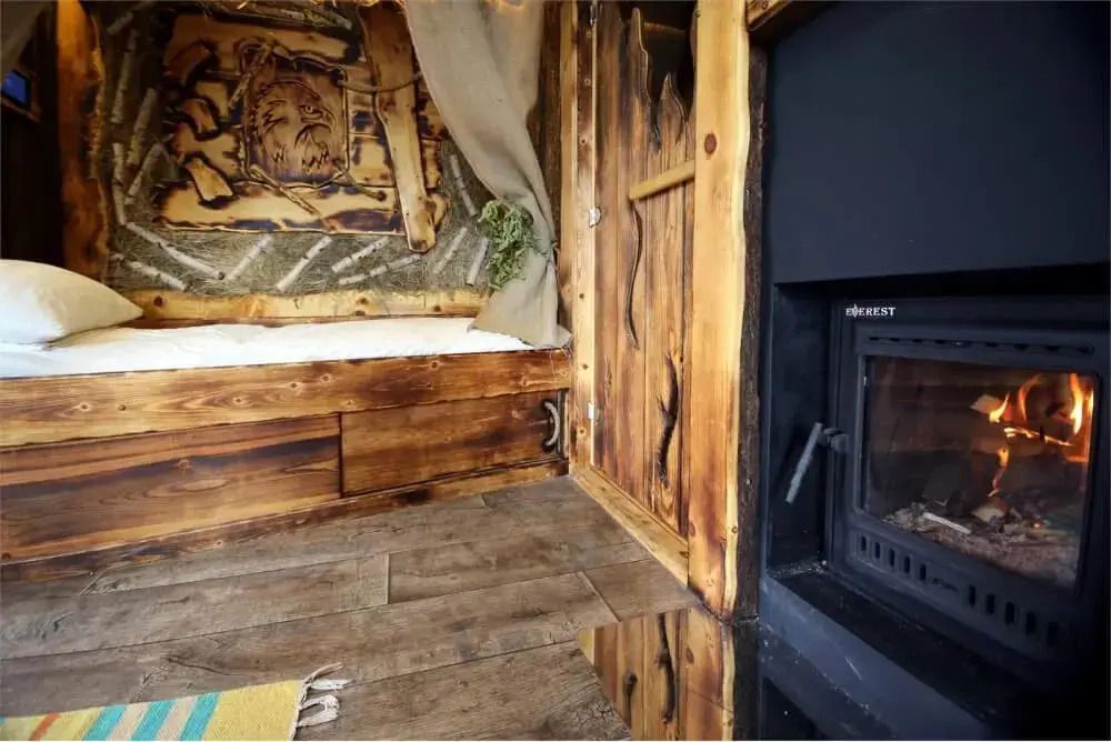 Уютный шатер для комфортного размещения дружной компании из 4 человек. Отдельно стоящие кровати, сделанные вручную из резного массива сосны. Удобные матрацы с подогревом, мягкие подушки и теплые одеяла, застеленные белоснежным постельным бельем. Дополнительно в комплекте полотенца. Интерьер каждого шатра по-своему уникален - от индивидуально подобранных форматов внутреннего освещения, до предметов мебели ручной работы. И конечно, для каждого гостя хватит розеток и электричества, чтобы зарядить все свои гаджеты.