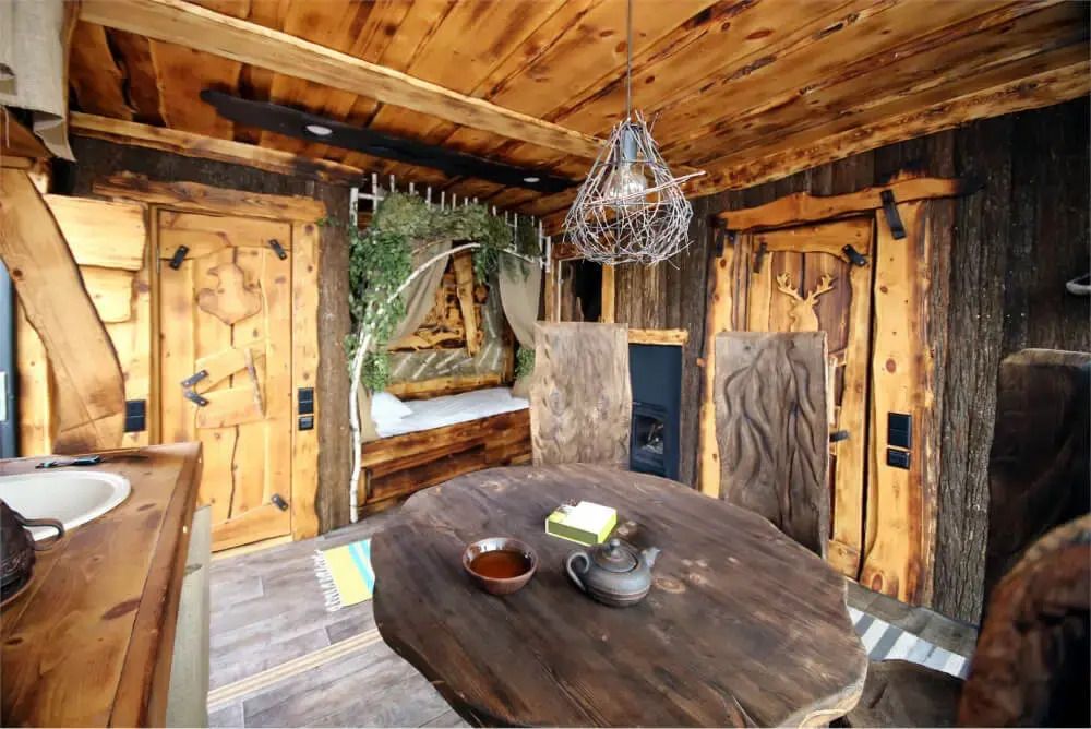 Сказочный дом из натурального кедра с видом на закат и просторы в тысячи гектар, со всеми удобствами, дровяной печью, эксклюзивной мебелью, панорамными окнами и собственной террасой, на которой расположена большая качель.