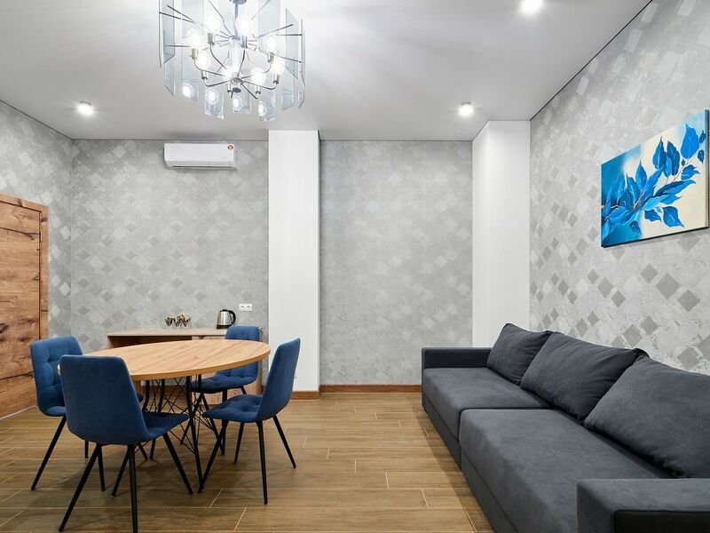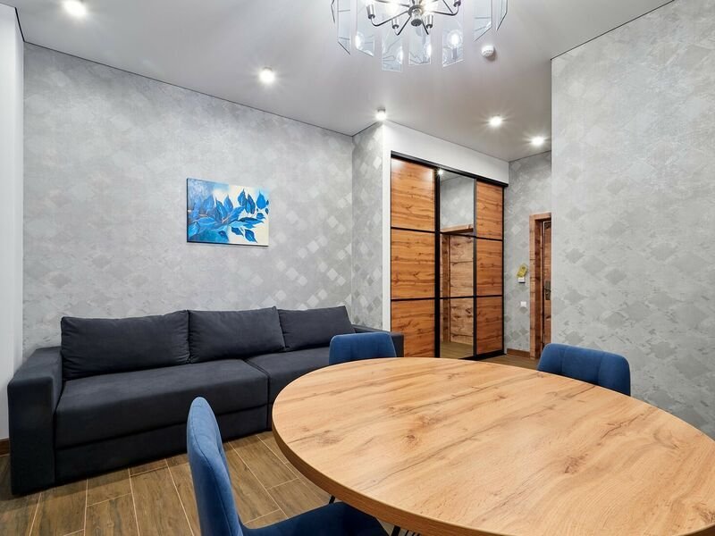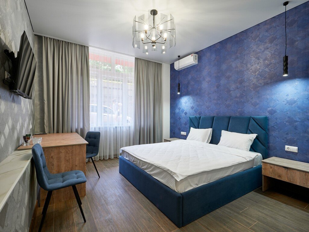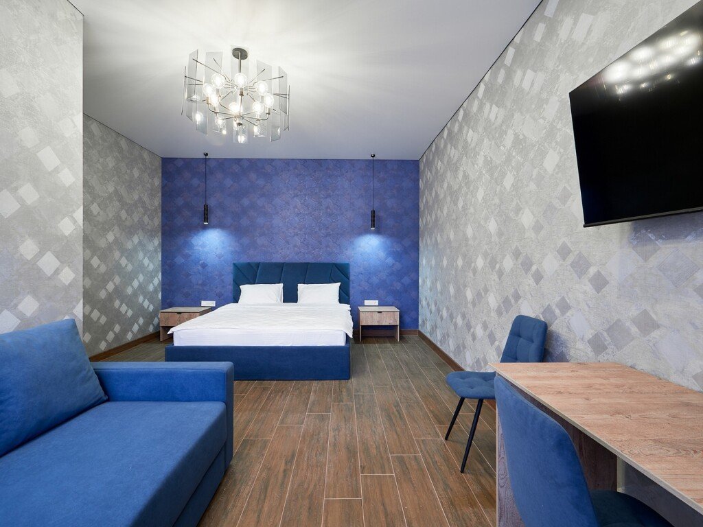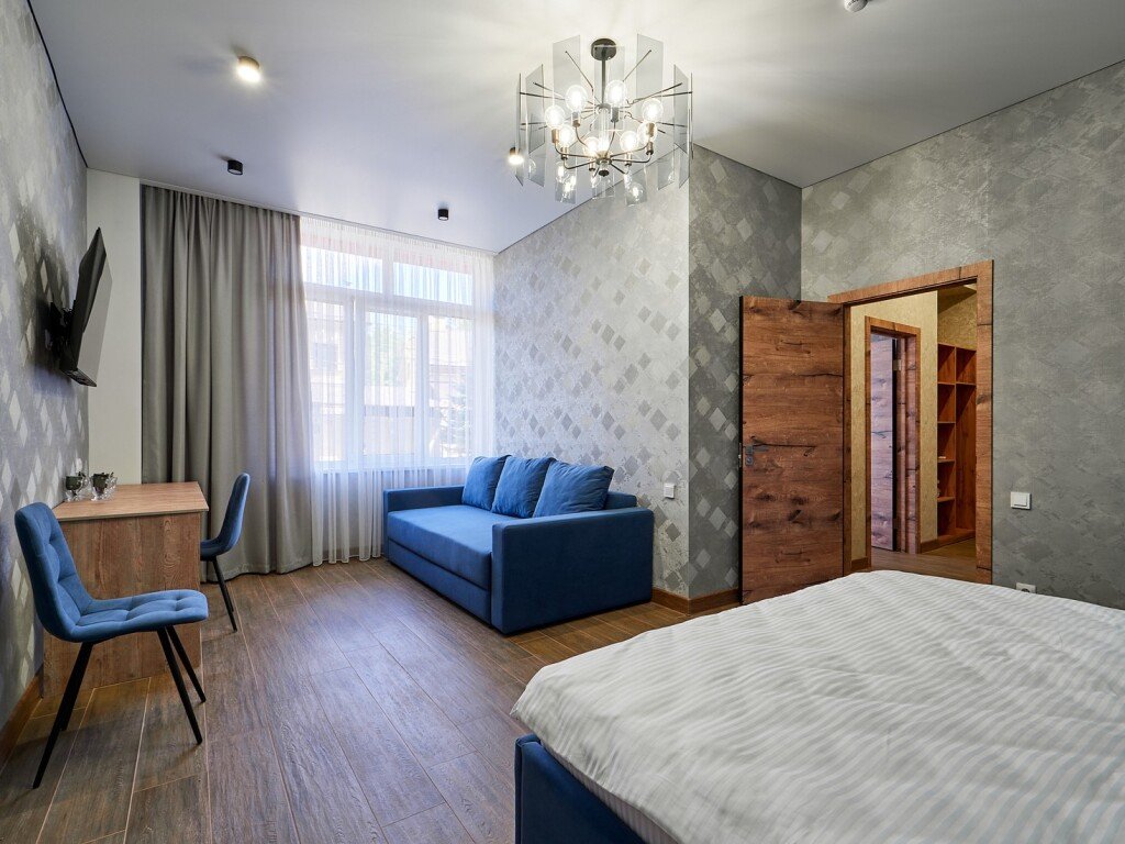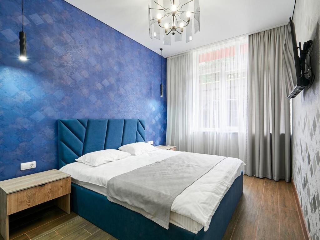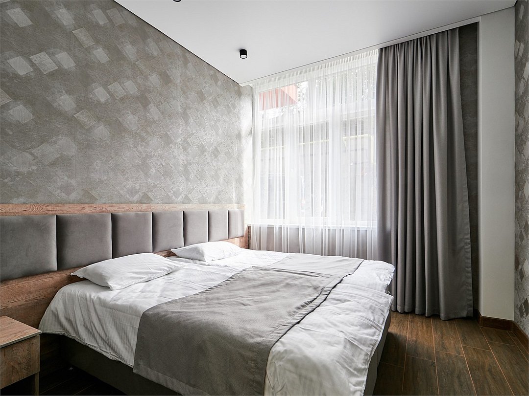 Номер категории «Апартаменты» общей площадью 70 кв.м. представляет собой идеальное место для комфортного отдыха и работы. Этот стильный и уютный номер состоит из гостиной и двух отдельных комнат, что обеспечивает максимальное уединение и комфорт для гостей. Гостиная — это просторная комната, оформленная в современном стиле. Здесь вы найдете удобный диван, обеденную группу с удобными креслами, что создает атмосферу уюта и расслабления. Современные текстуры и нейтральные цветовые гаммы придают интерьеру элегантность. Также в гостиной располагается телевизор с плоским экраном и зоной для приготовления чая, кофе. В одной спальне вас ждет двухспальная кровать с комфортным матрасом, обеспечивающая качественный сон. Вторая спальня специально оборудована двумя односпальными кроватями, которые при необходимости можно объединить в одну двухспальную кровать. Просторный санузел, расположенный между спальнями, оборудован современной душевой кабиной, что делает его удобным и функциональным. В ванной комнате предусмотрены все необходимые принадлежности, включая свежие полотенца, а также набор косметики для ухода за кожей. Этот номер идеально подходит для семейного отдыха или группы друзей, обеспечивая всем необходимое для приятного пребывания.Услуги и удобства