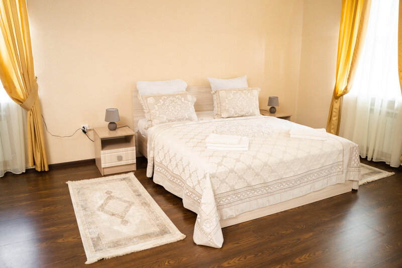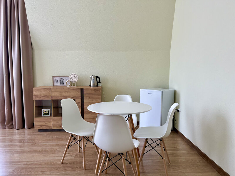 Красивый дом с несколькими этажами располагает тремя номерами для размещения. Все варианты просторные и обставлены необходимой мебелью и техникой. Для деловых людей имеется рабочая зона.