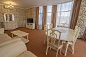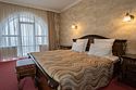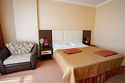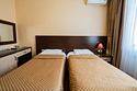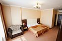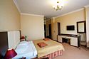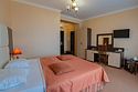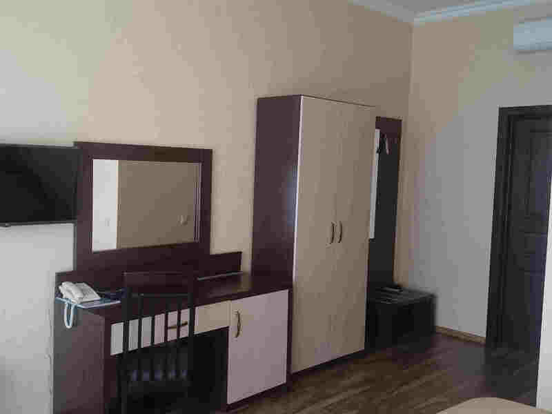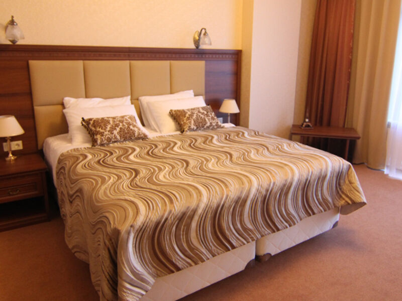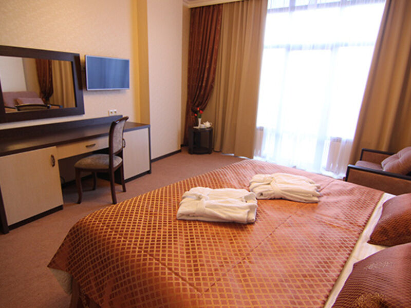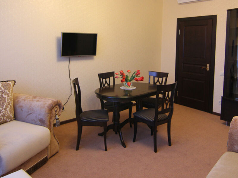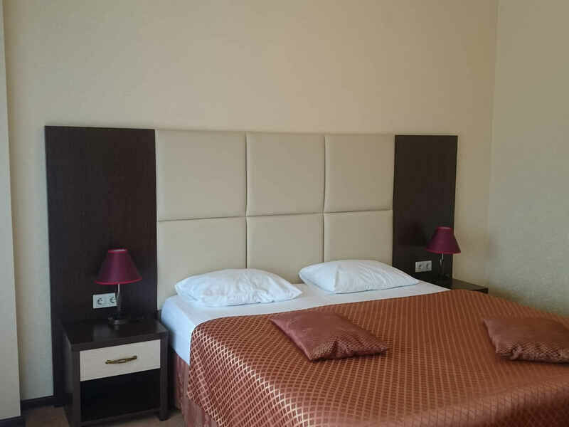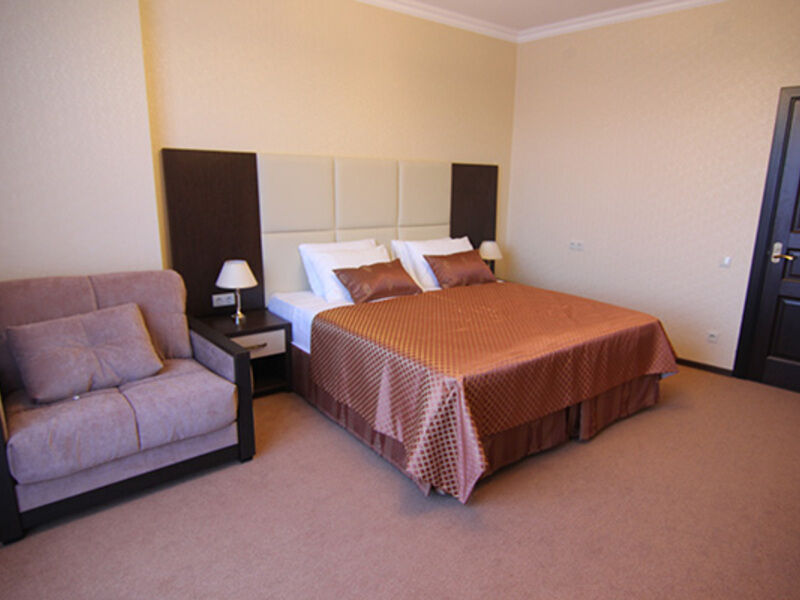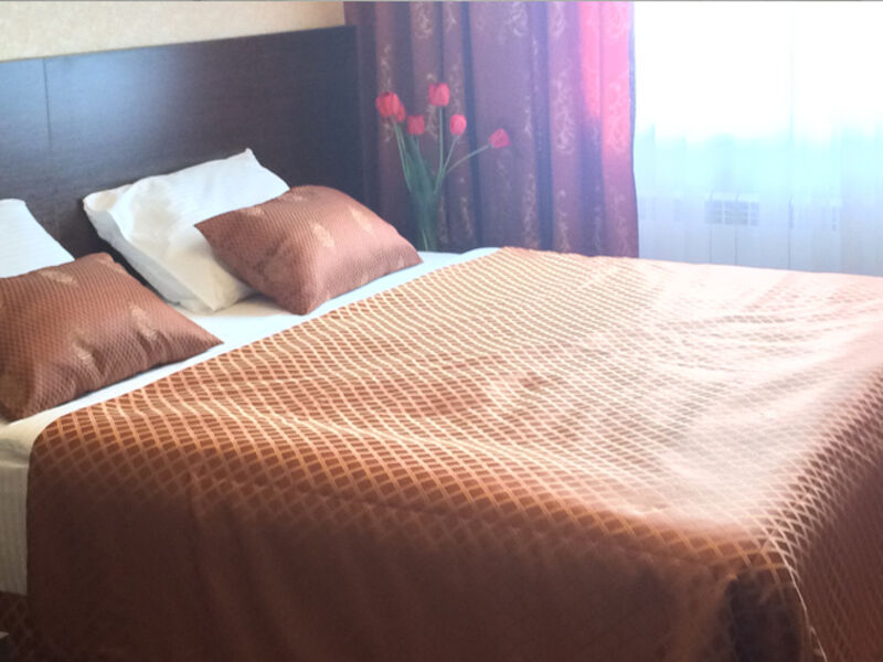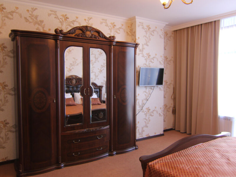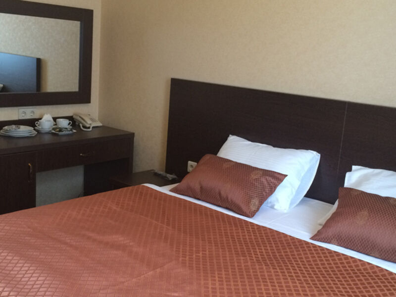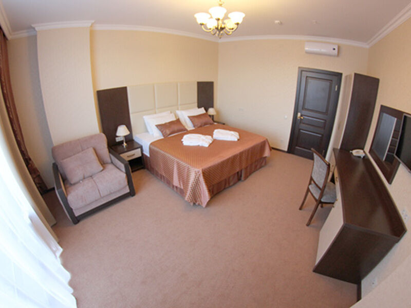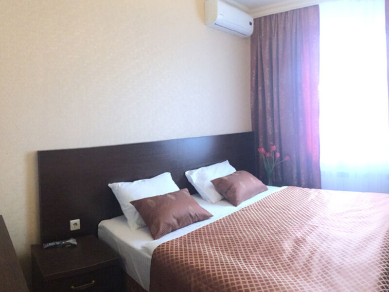 Шестиэтажный корпус отеля, оснащенный лифтом, возвышается на пересечении улиц Крупской и Розы Люксембург. Гостей ожидают однокомнатные номера Стандарт и Комфорт, двухкомнатные Апартаменты и номера Люкс. Уютные номера оснащены санузлом, сплит-системой. В каждом имеется телевизор-ЖК, электрочайник, фен. Люксы оборудованы качественным мебельным гарнитуром из дуба, а в Апартаментах для удобства отдыхающих предусмотрено два санузла.