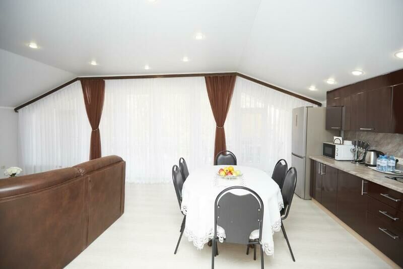 Для отдыхающих есть открытая терраса. К услугам гостей площадка для барбекю с беседкой и небольшая сауна.