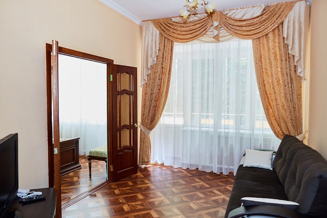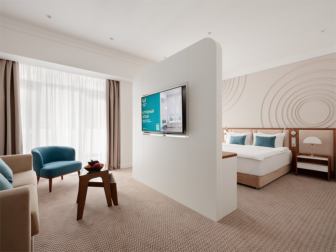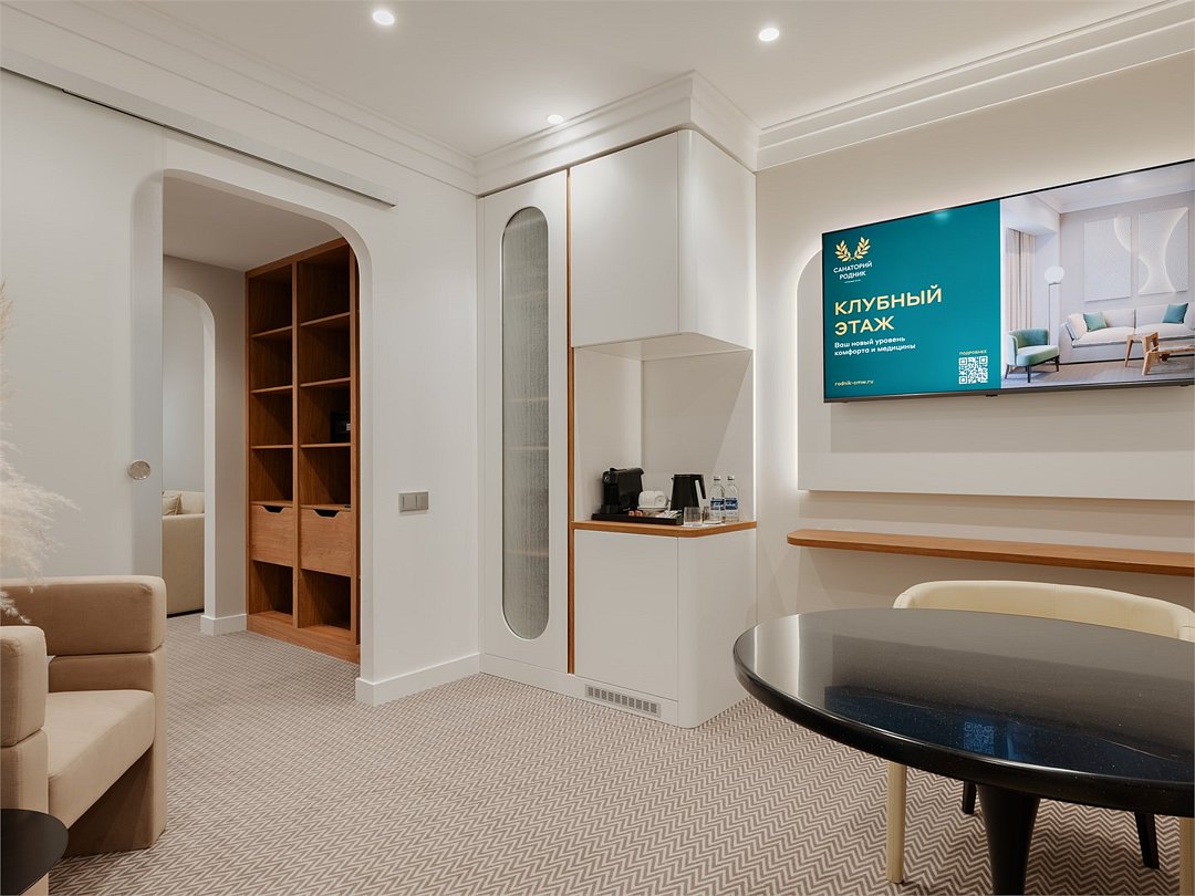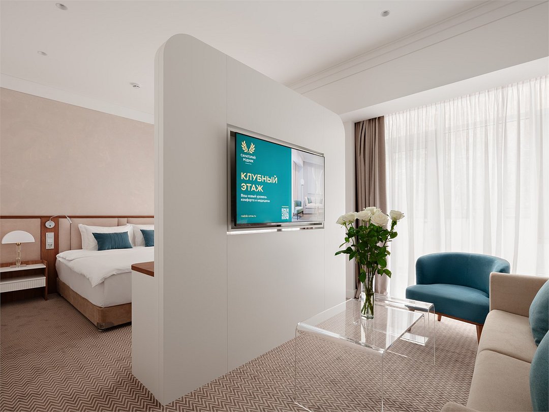 Номер отлично подойдет: • семьям с одним или двумя детьми, которые планируют долгосрочные программы оздоровления; • молодым парам и молодожёнам, которые предпочитают просторные номера; • гостям более зрелого возраста, которым важно иметь дополнительное пространство и комфортные условия.Услуги и удобства