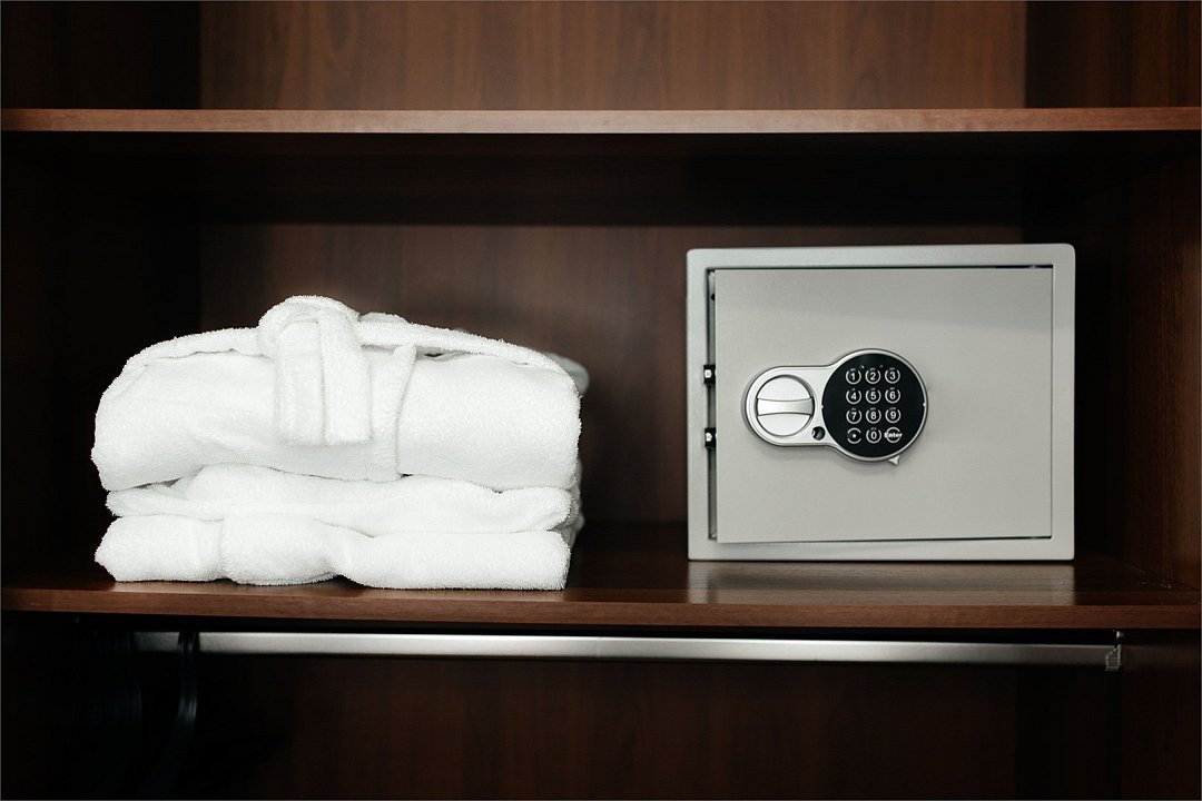 телевизор, телефон, холодильник, светильник, настольные лампы, фен, микроволновая печь, утюг, ванная комната, ванна, санузел, халаты, банные полотенца, тапочки, гигиенические средства, косметические средства, балкон, двуспальная кровать, гладильная доска, диван, кресла, стулья, шкаф для одежды, вешалки, журнальный столик, обеденный стол, зеркало, комод, ковер, мебельный гарнитур, чайный набор, набор посуды, сейф, чайник, унитаз, раковина, мягкая мебельВ гостиничном номере