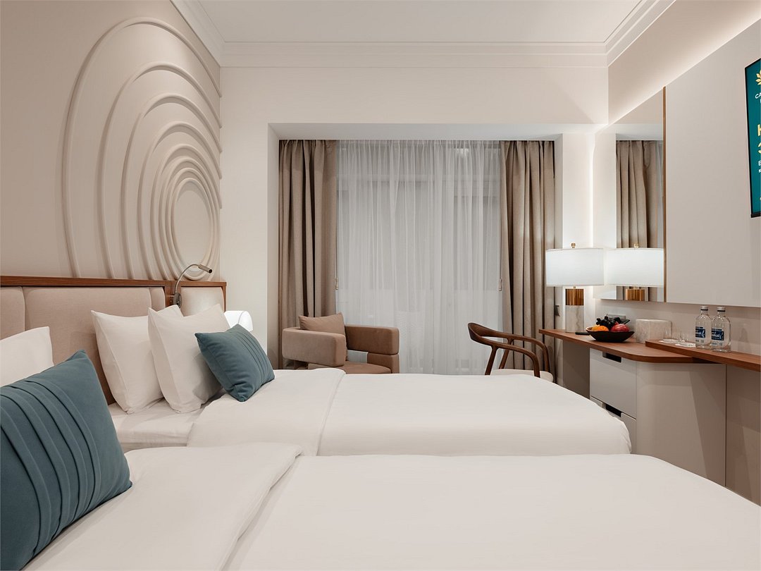 Дизайнерский номер, с панорамными окнами и великолепным видом на самый большой парк Европы. Уютный и светлый номер – идеален для спокойного отдыха вдали от городской суеты. Номера категории «Стандарт» коннекты (смежные) и могут быть объединены в двухкомнатные семейные номера, благодаря соединяющей их межкомнатной двери. Номер отлично подойдет: • индивидуальным туристам, которые предпочитают современные номера и качественный сервис; • гостям более зрелого возраста, которым важны комфортные условия проживания и персональный подход; • деловым путешественникам, которые нуждаются в удобном пространстве для работы и отдыха; • гостям, проходящим реабилитацию или восстановление после операций, которым важна возможность расслабиться в более просторной обстановке.Услуги и удобства