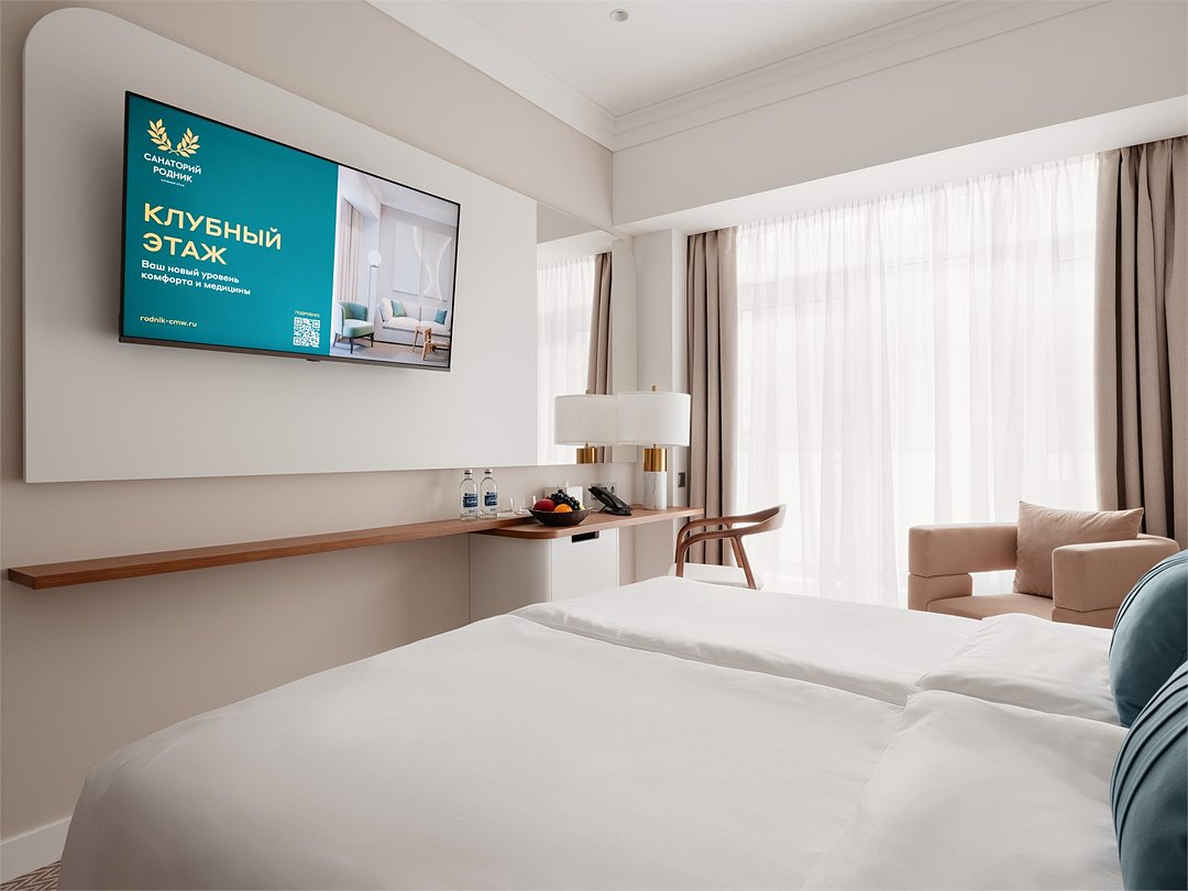 Номер отлично подойдет: • гостям, которые проходят длительную оздоровительную программу; • для родителей с ребёнком до 4-х лет; • пожилым людям, которым нужно базовое, комфортное размещение с современными удобствами.Услуги и удобства