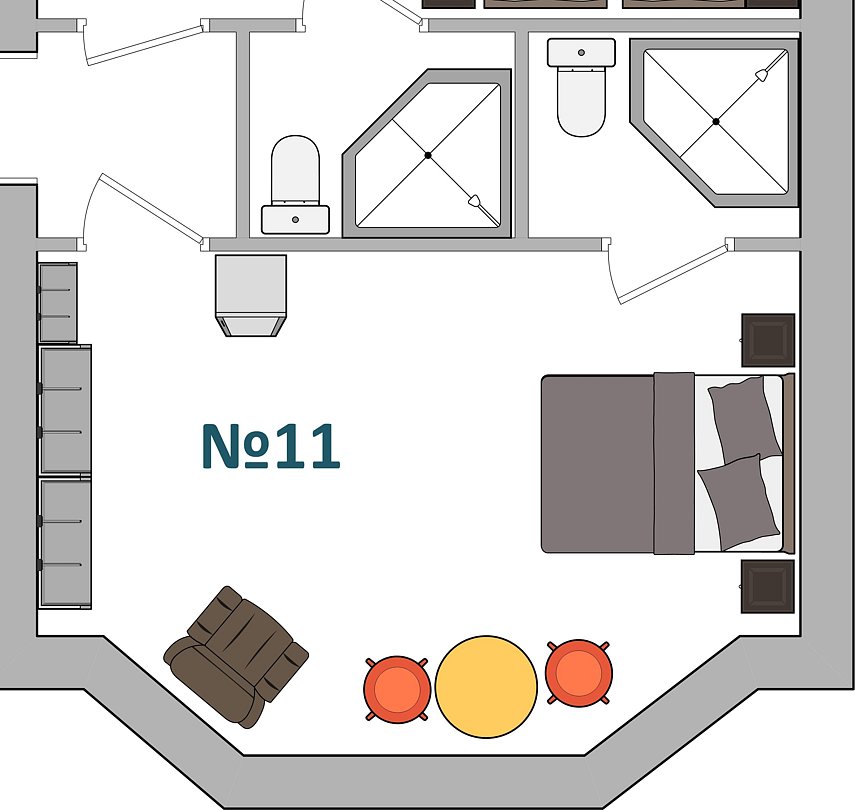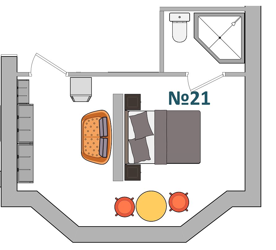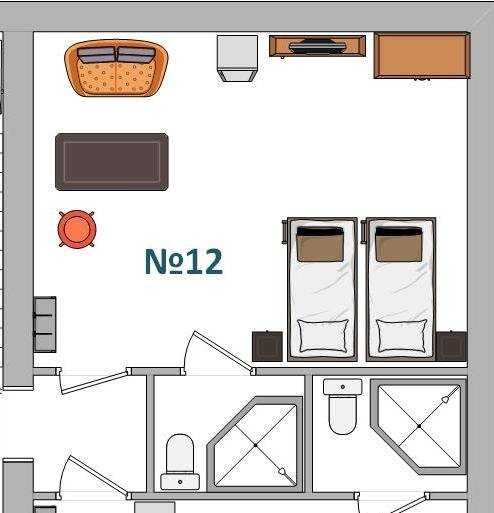 Номер с двумя отдельными комнатами и собственным санузлом.