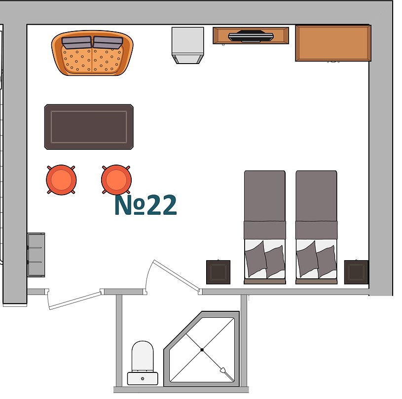 25 м2 · 2-х местный номер в доме + 1 доп. место