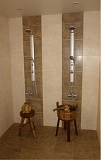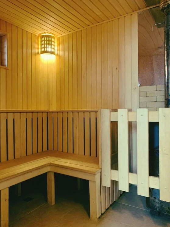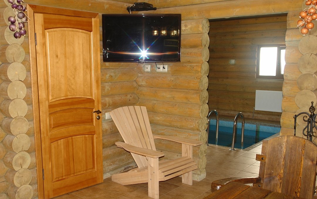 На территории имеется «Русская баня на дровах» с бассейном, а так же с услугами SPA-технолога и массажиста.