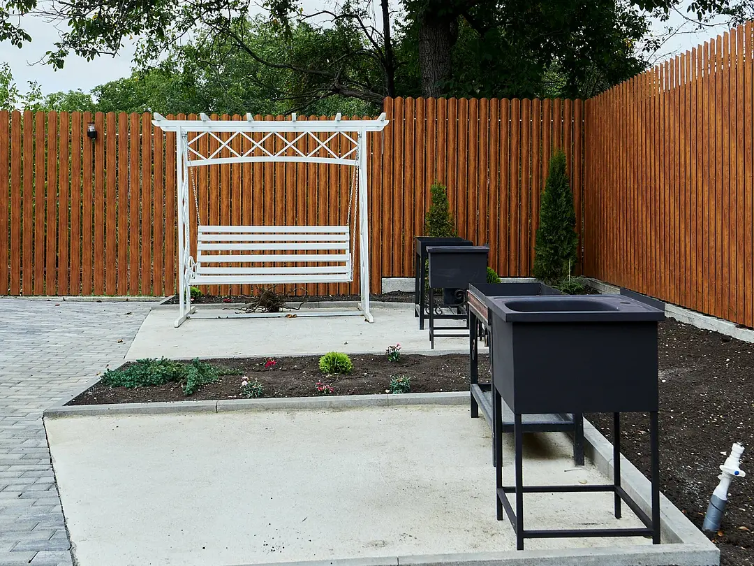 Для приготовления блюд на свежем воздухе предоставляется индивидуальная мангальная зона всего в паре шагах от коттеджа.