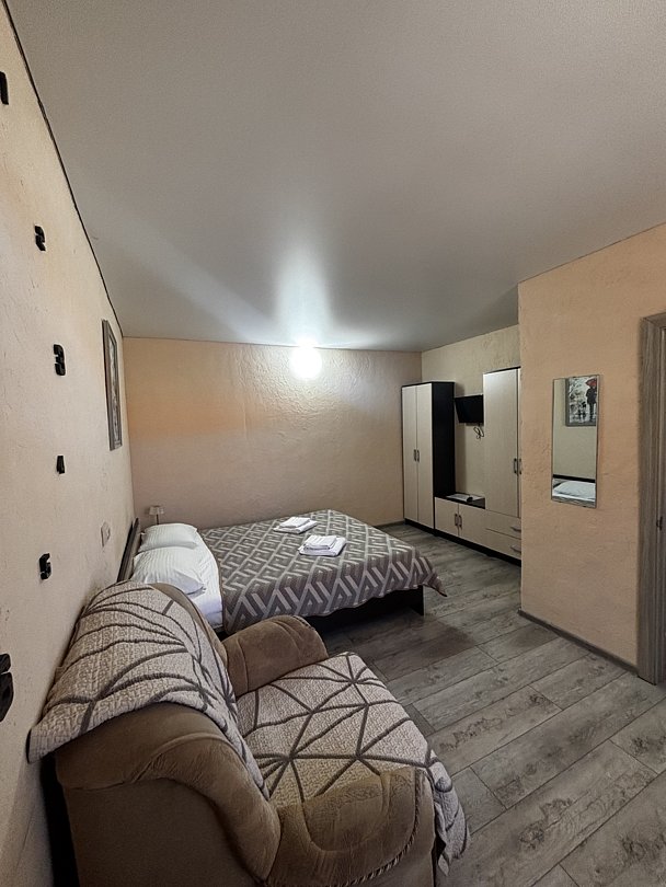 Отель расположен в исторической парковой части Кисловодска, всего в 1 км от национального парка. Вблизи — Никольский собор, музей-усадьба Н.А. Ярошенко, колоннада и Нарзанная галерея. До железнодорожного вокзала — 3 км. Номера оборудованы всем необходимым: Smart TV, холодильник, чайник, фен, Wi-Fi. На территории — кухня-столовая, бар, мангальная зона и охраняемая парковка. Рядом — река Ольховка.