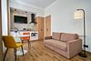 2-спальная кровать, прикроватные тумбочки, шкаф, вешалка, диван, встроенная кухня, стол, стулья