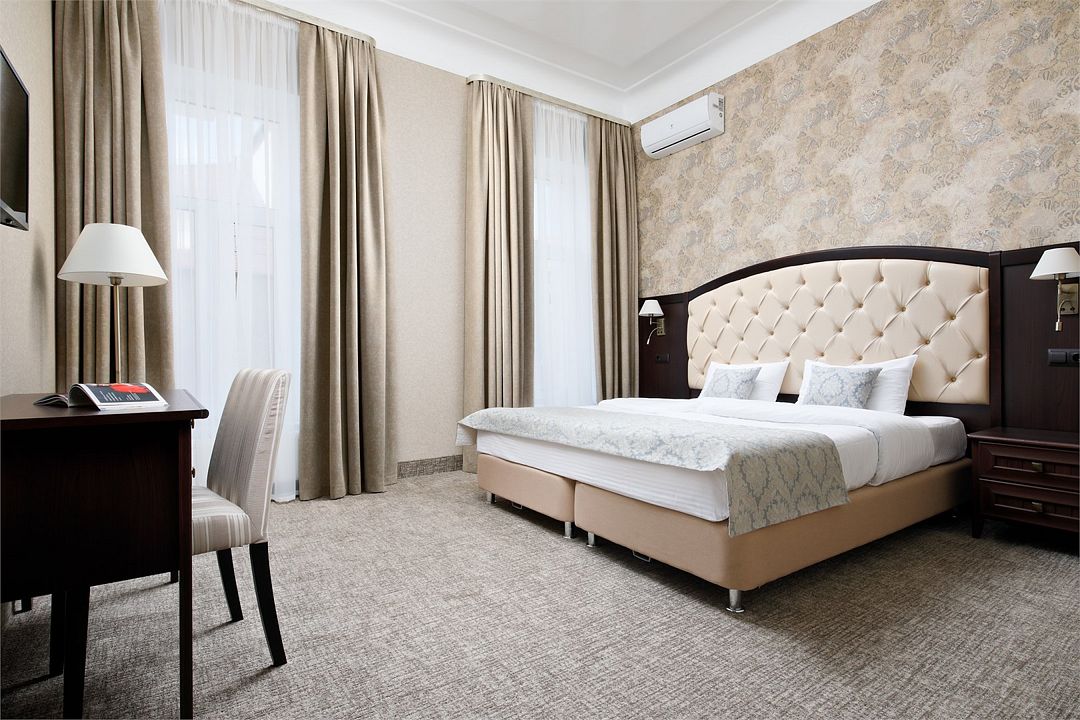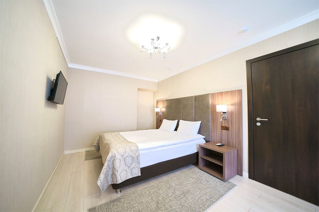 Номерной фонд представлен 25 удобными и комфортабельными для проживания номерами различных категорий и степени вместимости, начиная от однокомнатных и заканчивая двухкомнатными апартаментами. Каждый из них включает в себя гардероб, сейф, звукоизоляцию, кондиционер, рабочий стол и телевизор. Собственная ванная комната оснащена феном, стиральной машиной и гигиеническими принадлежностями.