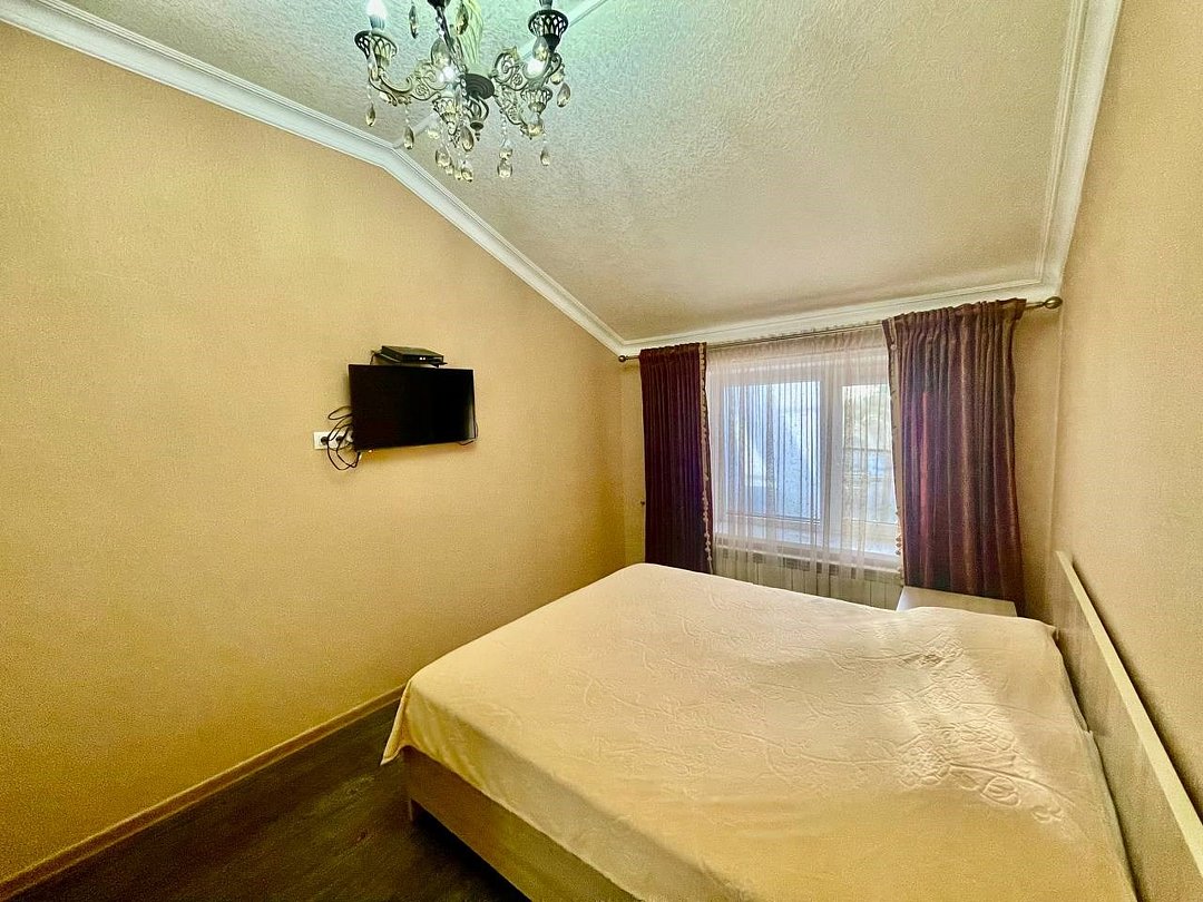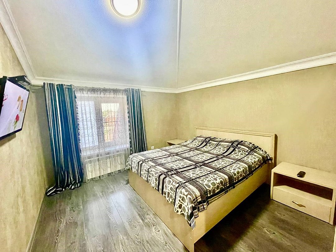 Уютный 1-комнатный номер "Стандарт" с 2-спальной кроватью рассчитан на проживание 3 Гостей. СПАЛЬНЫЕ МЕСТА: 2-спальная кровать и евро-раскладушка (доп место) ДЕТИ: до 6-лет размещаются бесплатно без предоставления дополнительного места. ОСНАЩЕНИЕ НОМЕРА: ТВ SMART (приставка), кондиционер, эл. чайник, мини- холодильник с маленькой морозилкой, фен. САНУЗЕЛ: душ, раковина, туалет, базовые гигиенические средства: мыло, шампунь, гель для душа, зубной набор, тапочки, по 3 полотенца на гостя. Уборка, смена белья/полотенец (1 раз в 3 дня/ по запросу).Услуги и удобства