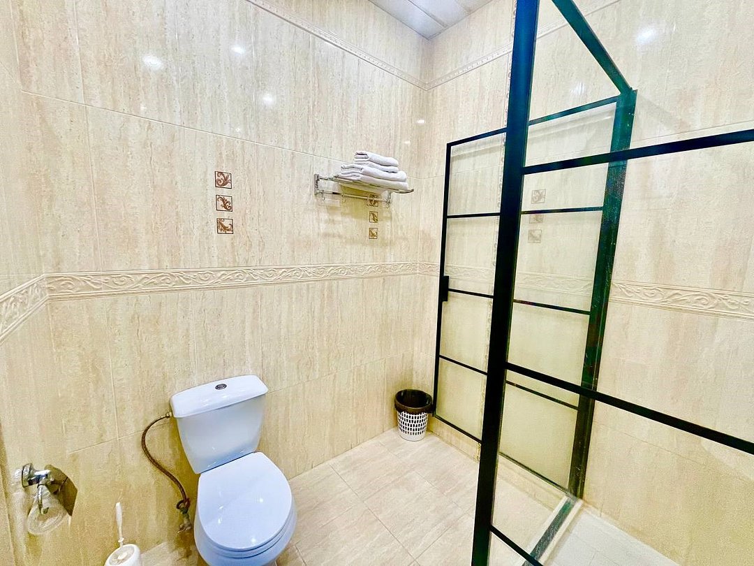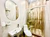 Wi-Fi, кондиционер, фен, душевая кабина, санузел, теплый пол, тапочки, гигиенические средства, кровать «King size», тумбы, стулья, зеркало, сейф, чайник, унитаз, раковина, питьевая вода, отопление, душ, вид на город, вид во двор, стаканы, стол, мини-холодильник, шкаф-купе, телевизор со Smart TV, теплые полы, угловой диван-кровать, межкомнатная дверь, услуги прачечной (платно), вешалки-плечики, мыло, затемняющая штораВ гостиничном номере