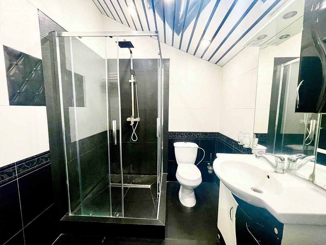 Wi-Fi, кондиционер, фен, душевая кабина, санузел, теплый пол, тапочки, гигиенические средства, две односпальные кровати, ортопедический матрас, тумбы, стулья, зеркало, чайник, унитаз, раковина, отопление, вид на город, вид во двор, ламинат, стаканы, стол, диван-кровать, мини-холодильник, шкаф-купе, телевизор со Smart TV, услуги прачечной (платно), вешалки-плечики, мыло, затемняющая штораВ гостиничном номере