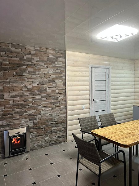 В каждой комнате свой телевизор, сплит-система, постельное бельё. Зона кухни. Веранда с небольшой зоной для готовки, раковина с подведенной водой, стол, стулья, мангал.