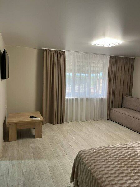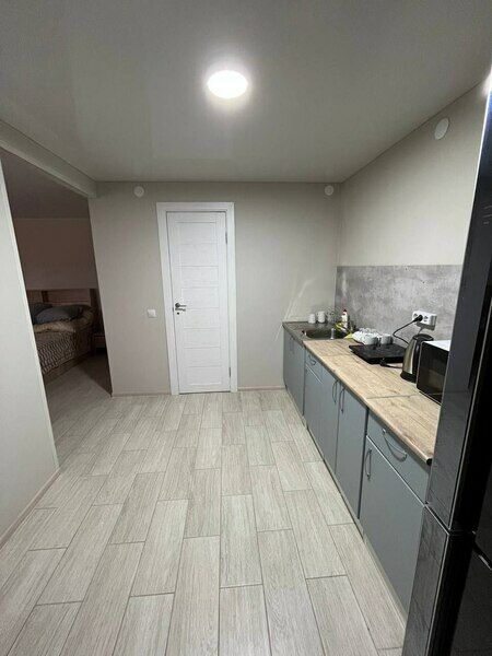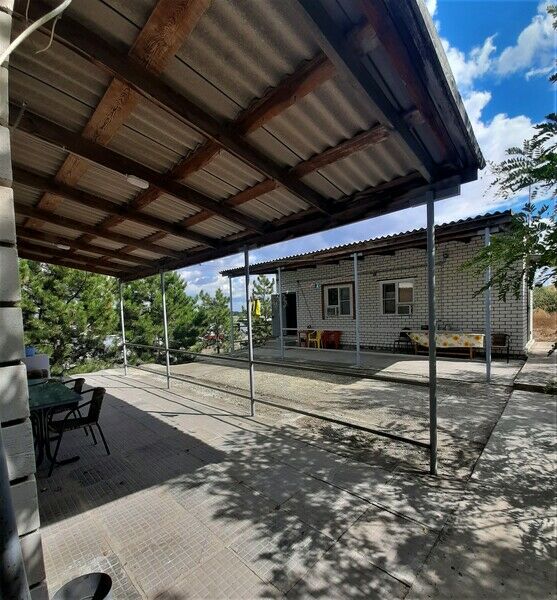 Одна большая комната с двуспальной кроватью, односпальной и диваном. Санузел совмещённый. Зона кухни. Веранда к дому, мангал.