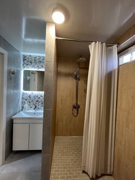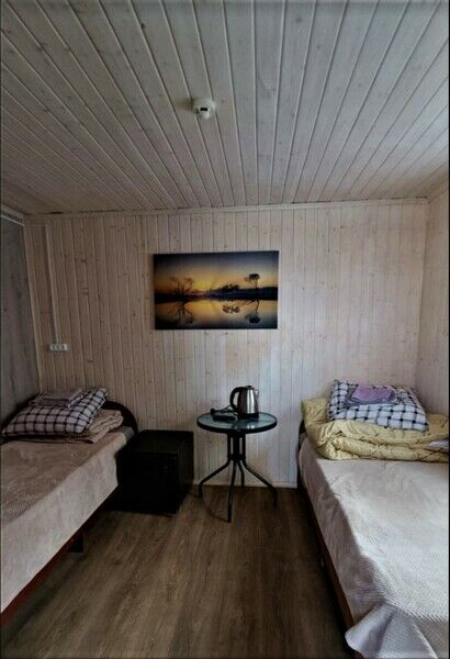 Возможность забронировать комнату из двух. Вместимость на 2 и на 3 человека с отдельным входом. Удобства в отдельном корпусе (унитаз, раковина, душ).