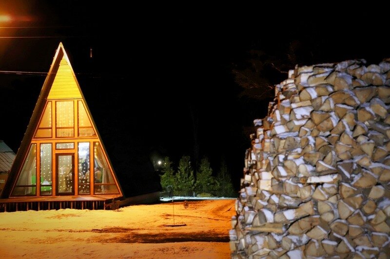 Зимой — огромные поля, на которых можно покататься на лыжах, поиграть в снежки, слепить снеговика, вечером посетить баню или сауну, а затем выпить горячего чая из веточек малины, смородины или вишни, приготовленным в настоящем русском самоваре.