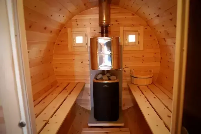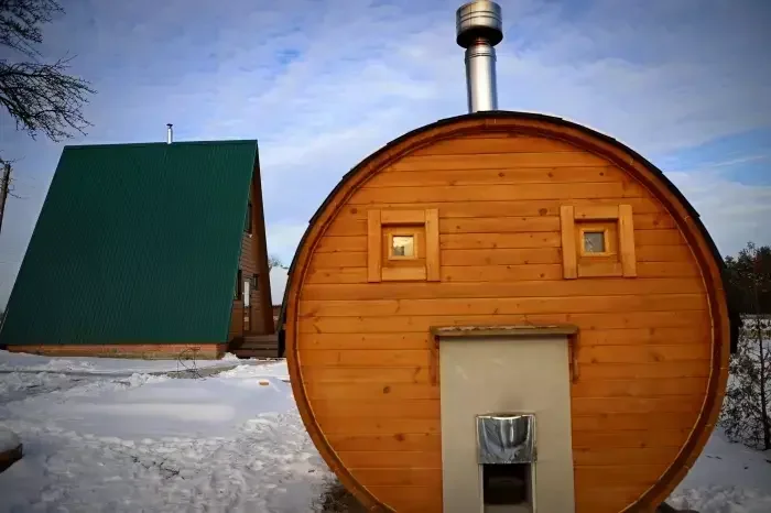Читать полностьюТрехсекционная баня-бочка на дровах с вместимостью до 6 человек, отдельной парилкой и раздевалкой.