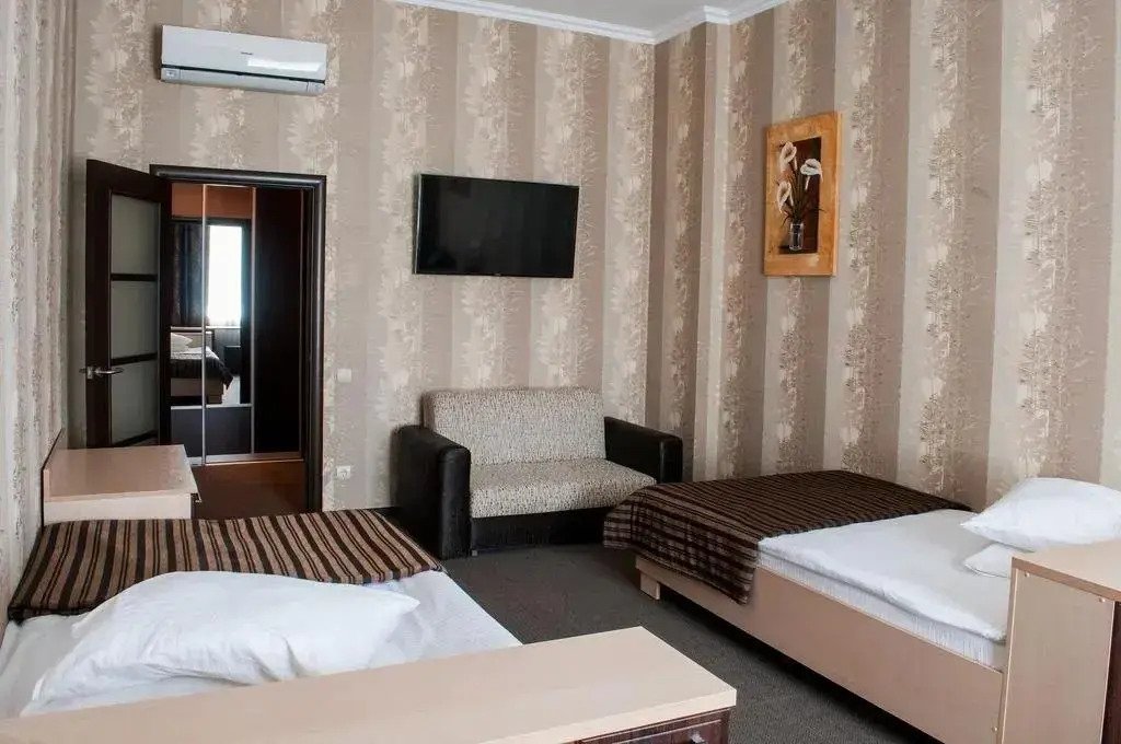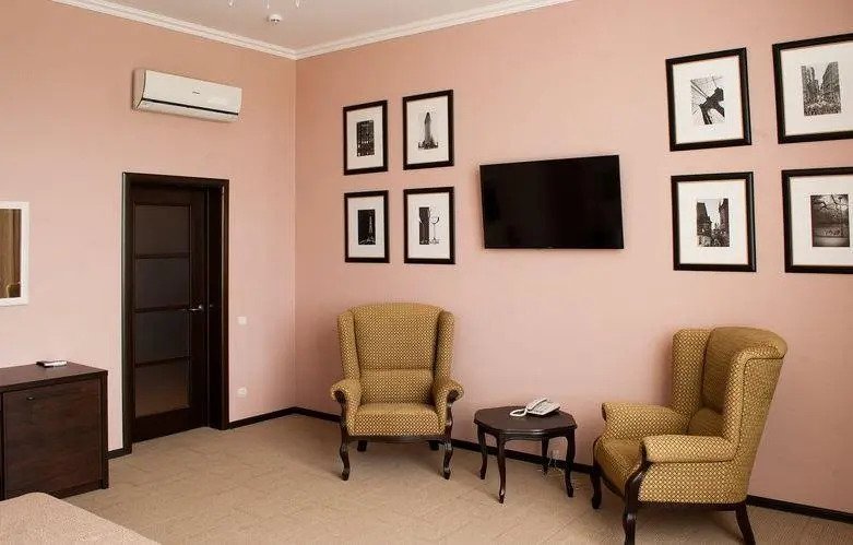 Номер уютно обставлен и оснащён необходимым, чтобы отдохнуть после долгого и насыщенного дня. Имеются телевизор, мини-бар, халат и тапочки. Перечисленные услуги есть не во всех номерах.