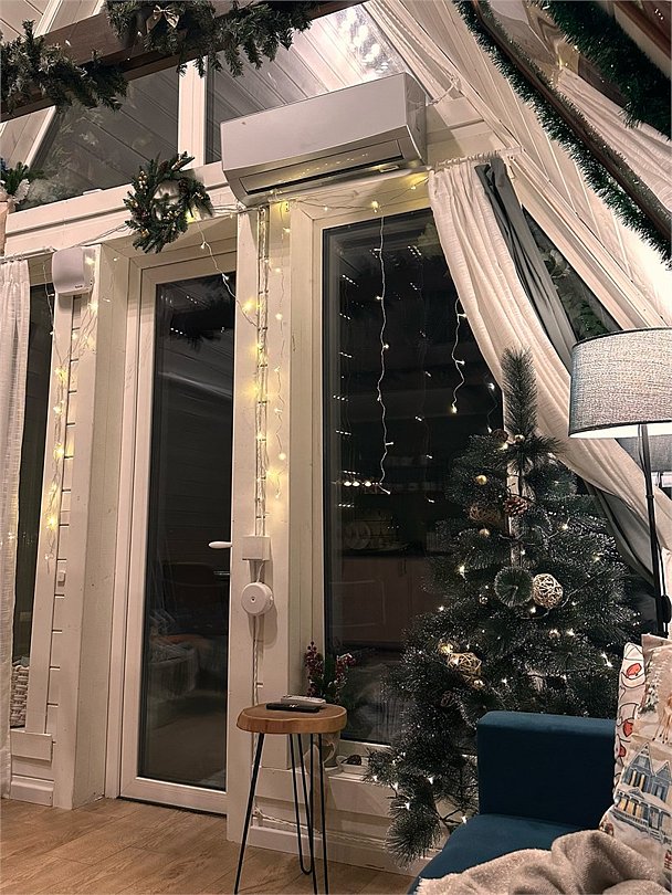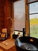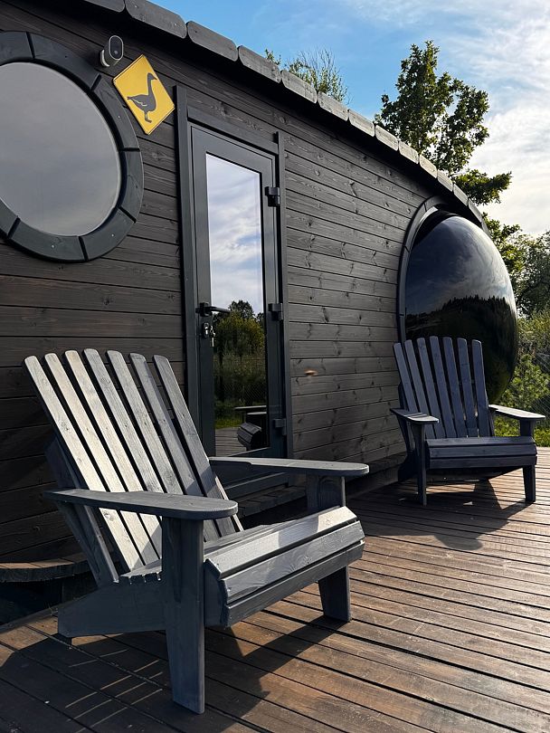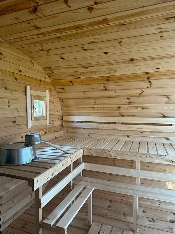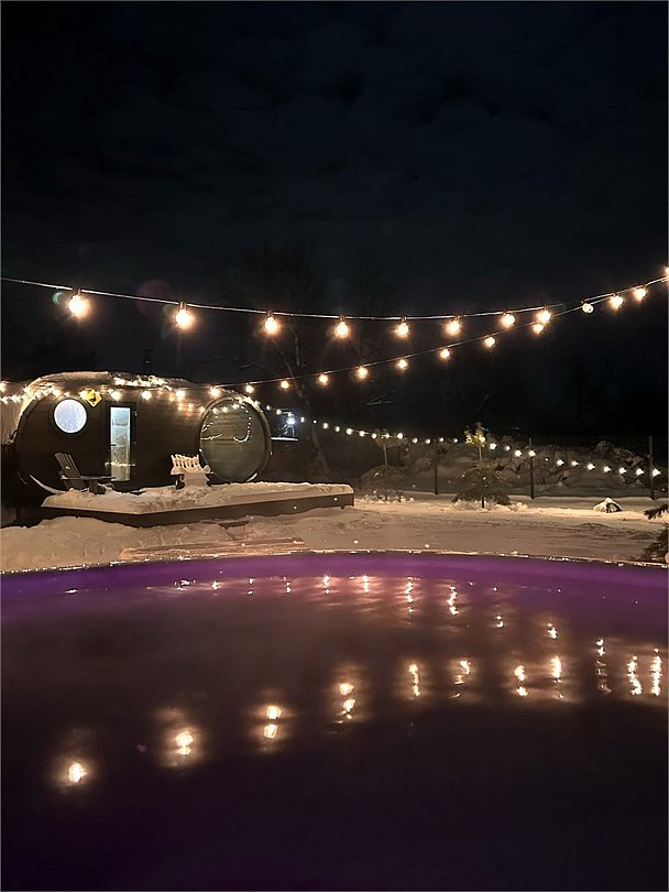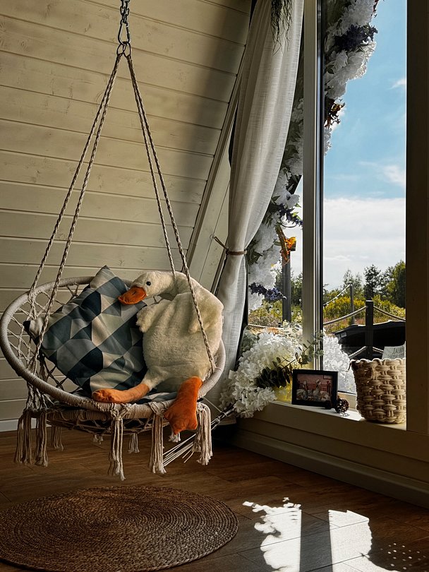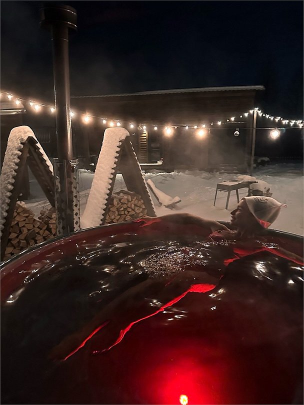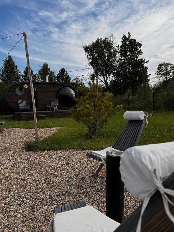 Есть открытая горячая купель и баня с панорамным окном в парной, доступные за дополнительную плату.