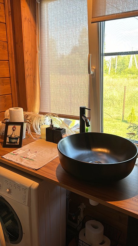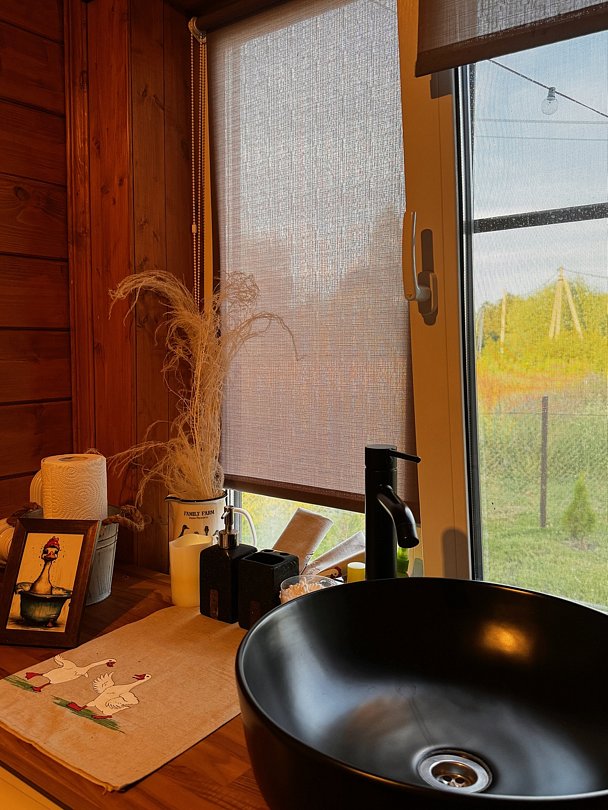 Инфраструктура: зона отдыха, обливное ведроК Вашим услугам погреться в бане с панорамным окном на участок. Баня греется до 60-70 градусов, использовать можно без ограничений по времени.