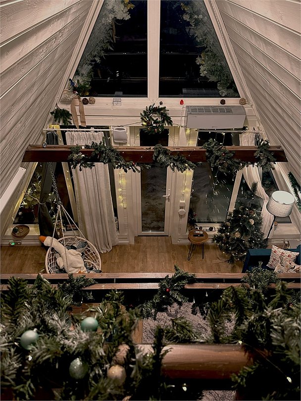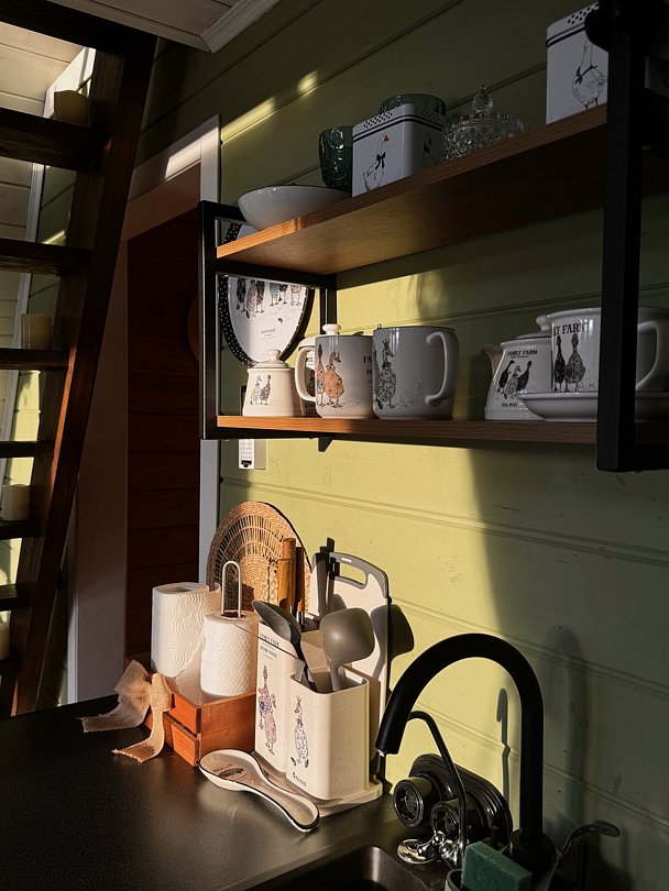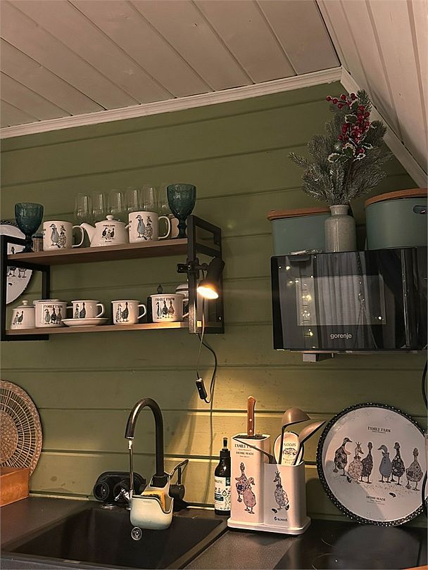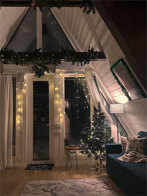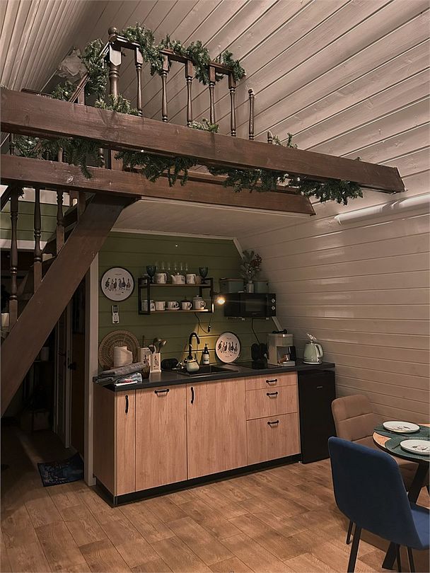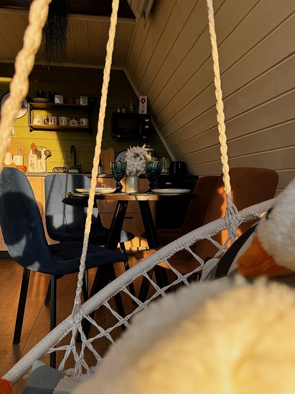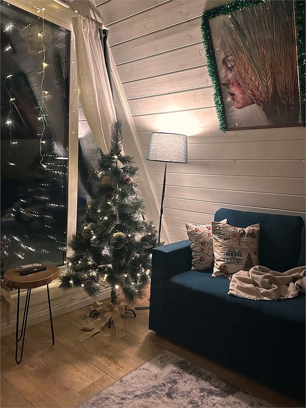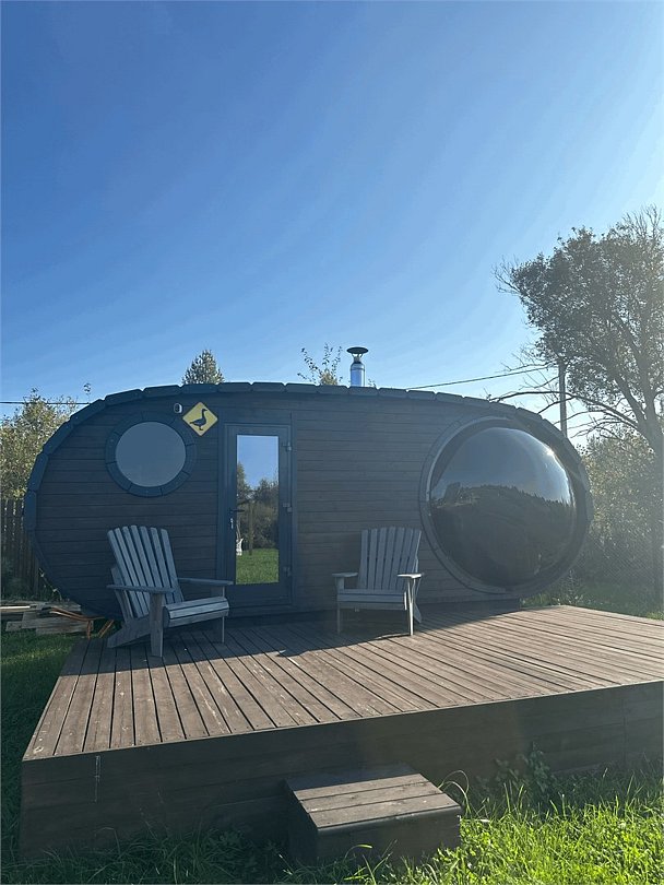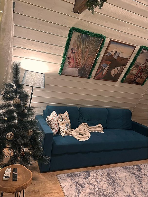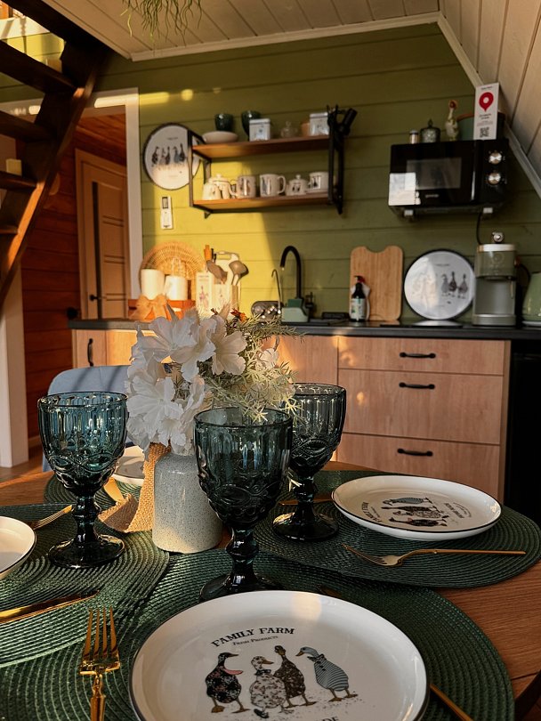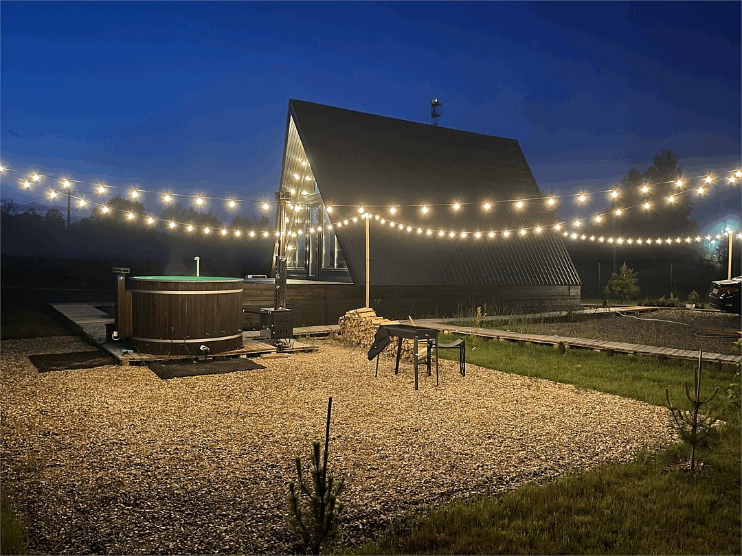 Вас встретит теплая, домашняя атмосфера. Домики площадью 54 кв. м идеально подходит для размещения до четырех взрослых гостей. На верхнем ярусе находится двуспальная кровать, а внизу — раскладной диван.