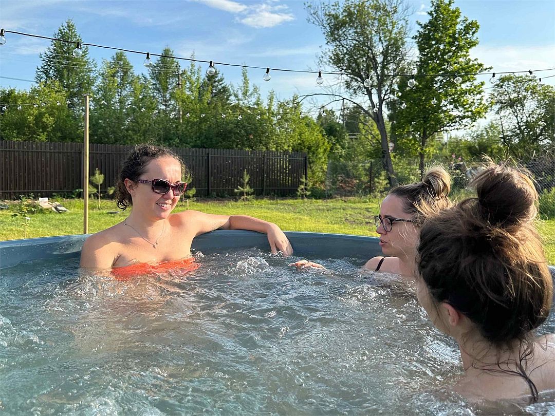 Температура воды 40-42 градуса, и зимой и летом. Как баня или сауна, только можно смотреть на звезды и дышать.