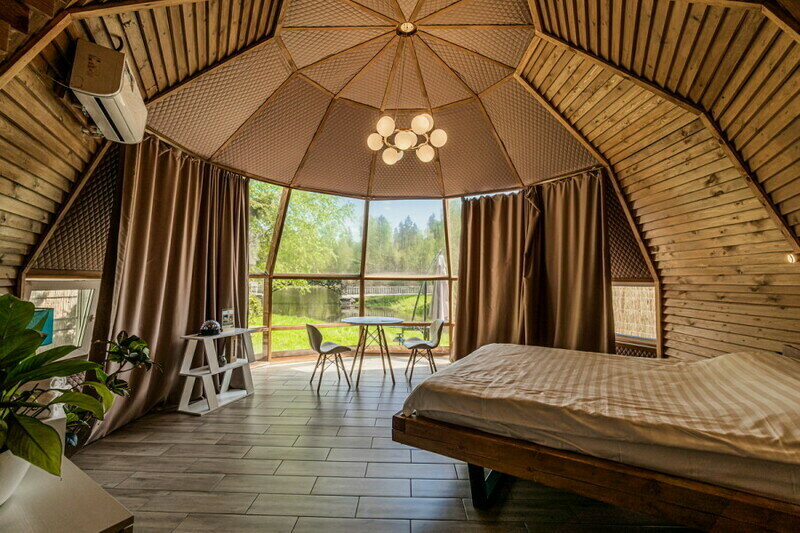 Встречать рассветы и провожать закаты с панорамным видом на Истринское водохранилище. В каждом куполе предусмотрено: