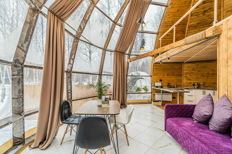 Приготовление пищи не будет проблемой, так как все купола оборудованы кухней со всем необходимым, а для любителей гриль зоны есть удобный гриль на веранде. Независимо от времени года, здесь всегда найдется занятие по душе: от русской бани и бочки фурако, до рыбалки, водных развлечений и настольных игр.