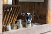 На ферме живут поросята, бараны, козы, коровы, курочки, перепелки, кролики и кот Петр.