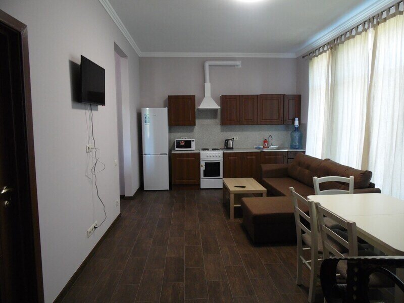 с/у, три кровати DBL,две TWIN, раскладной диван,кухонный уголок,холодильник,электрочайник,МП,душевая кабина, возле дома мангла.