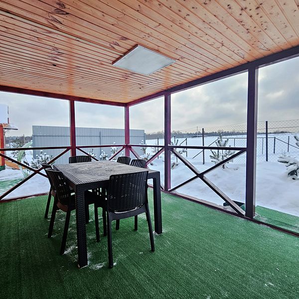 Удобства на территории: мангал с крышей, оборудованная веранда, детская площадка.