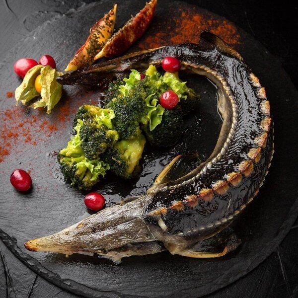 Оплачивает по тарифам: 1200 ₽/кг форели, 2400 ₽/кг осетра, 2900 ₽/кг белуга, 2200 ₽/кг сиг.