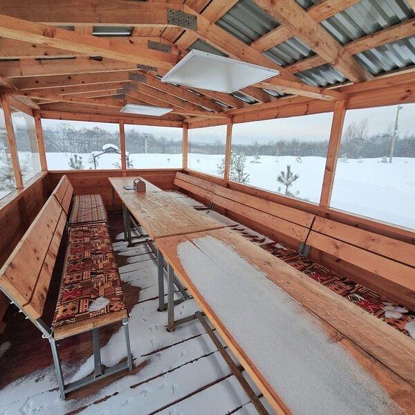 На водоёме 6 беседок standart на 4-6 человек каждая, а так же VIP беседка на 10-12 человек. Рядом с каждой беседкой установлен мангал.