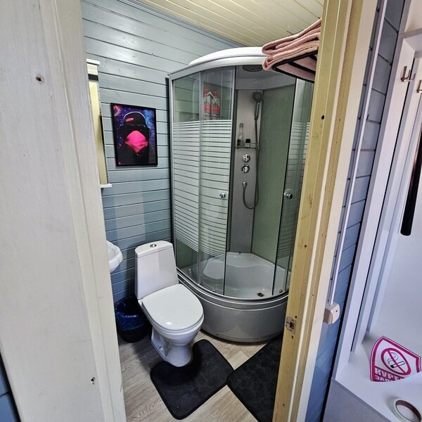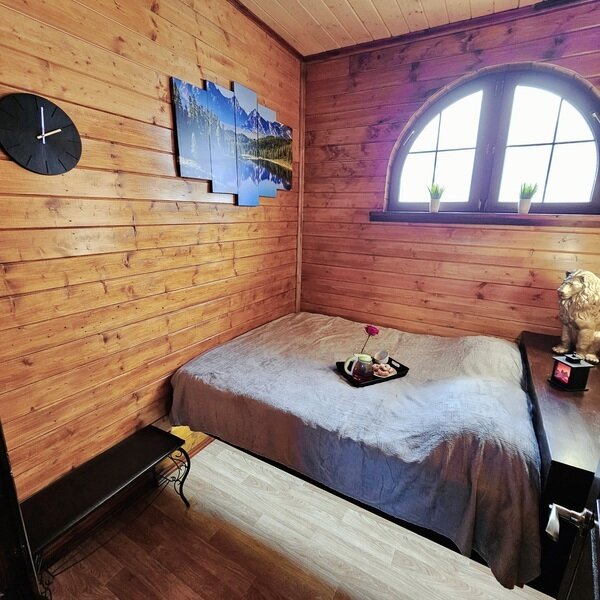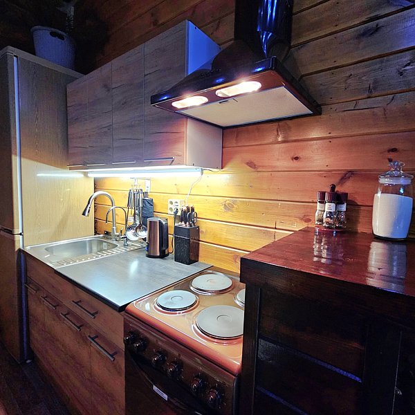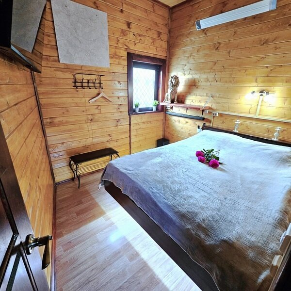 Удобства в доме: 2-х спальный диван, 2 спальная кровать, 2 односпальные кровати, шкаф, буфет, ЖК телевизор большой, холодильник, свч, кулер/чайник, фен, совместный сан. узел, сауна.