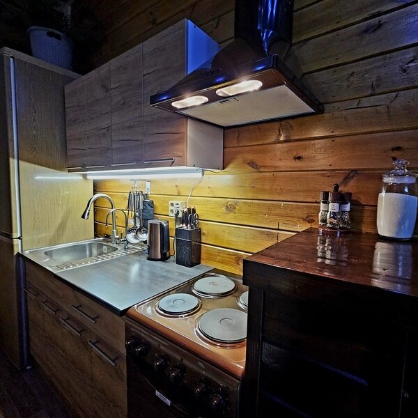 Семейный отдыхДостоинстваАрендовали домик на троих, тесновато, но есть все необходимое. Давно не общались в таком тесном семейном кругу!))) В домике тепло. Кухня очень достойная! Котлеты из осетра, стейк из осетра на чесночной подложке, а форель горячего копчения просто улетает за секунды!!! Очень вкусно!!!! Мы не рыбаки, и соответственно никого не удалось поймать, но мы не расстроились! Спасибо за отдых! Хотели сменить привычную обстановку и нам это удалось!