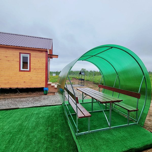 Удобства на территории: мангал с крышей, беседка, детская площадка.