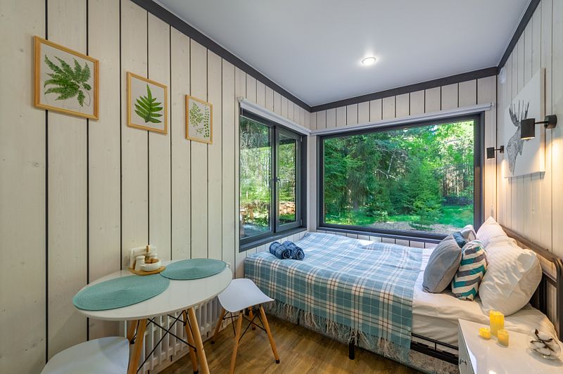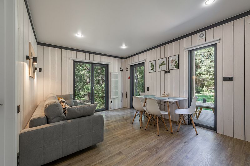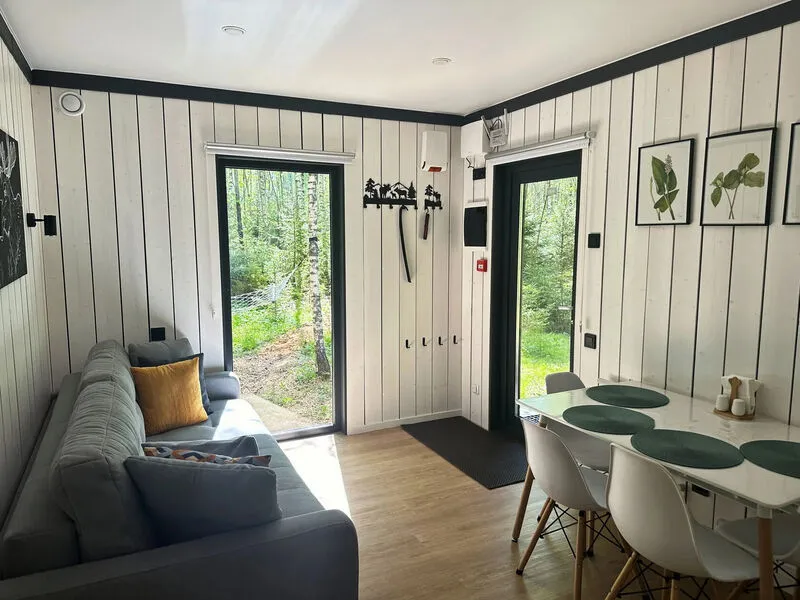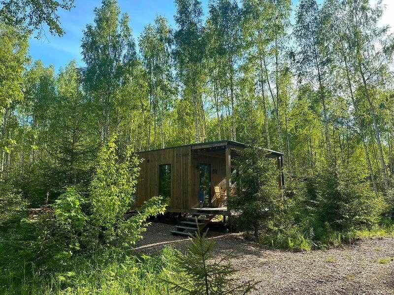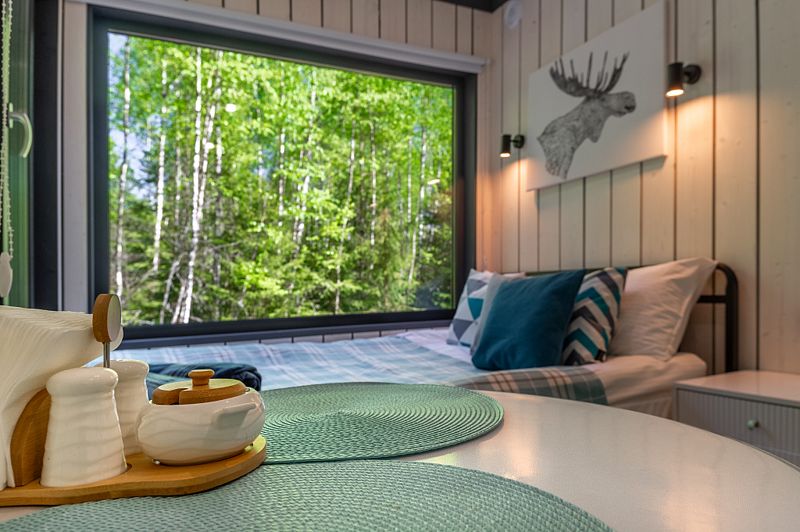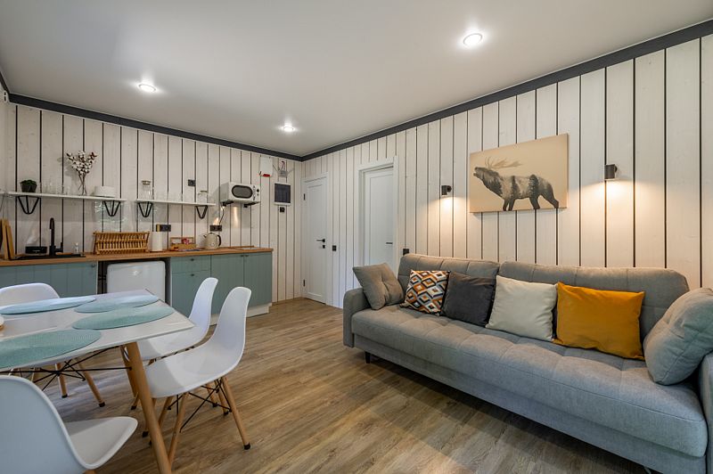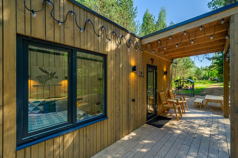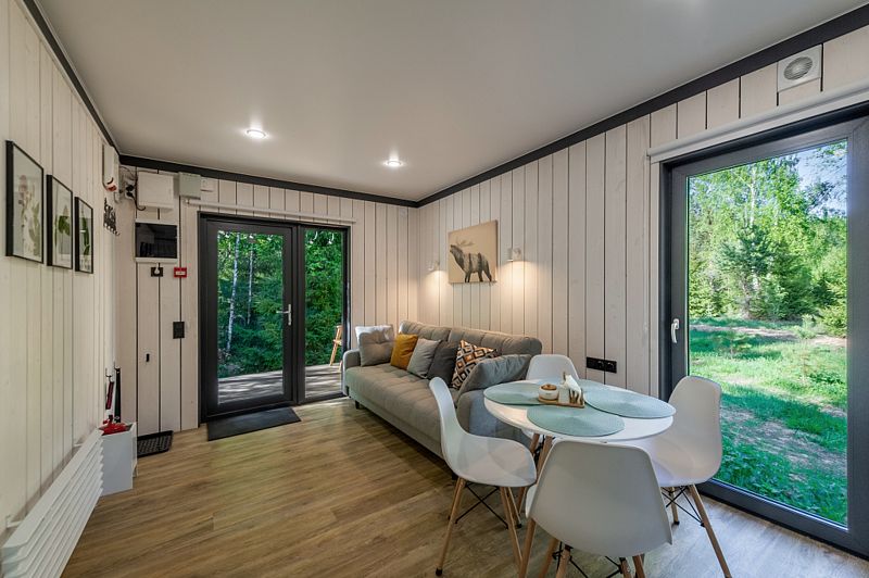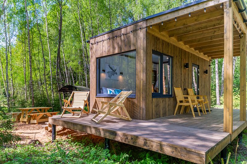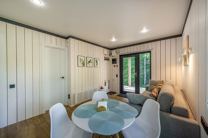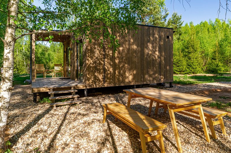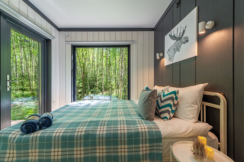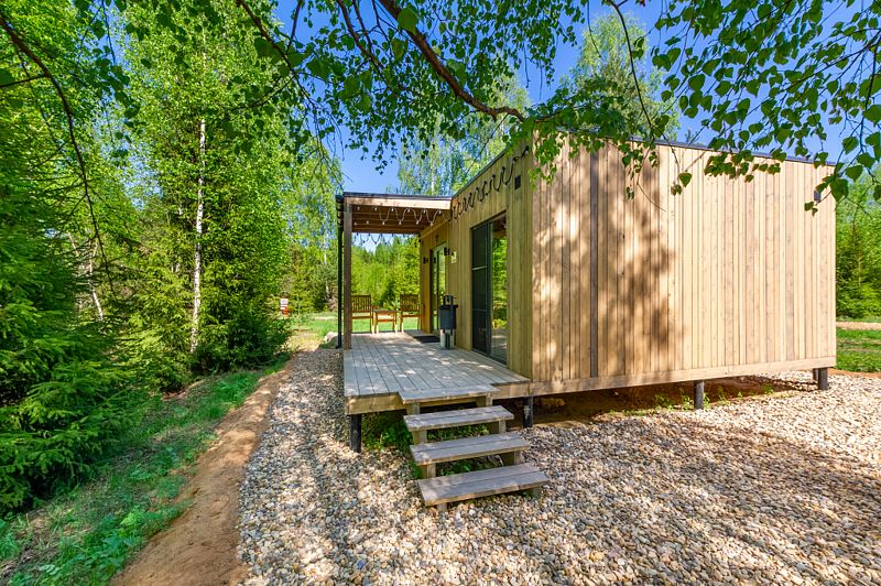 Уютные домики, оформленные в скандинавском стиле, предлагают комфортный отдых со всеми удобствами.