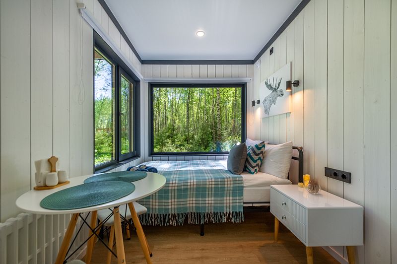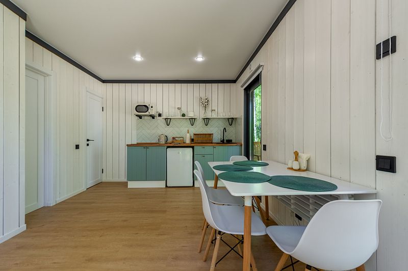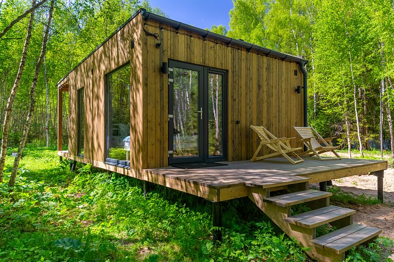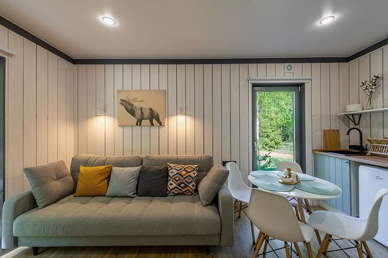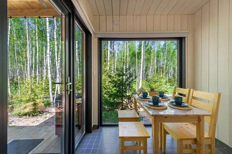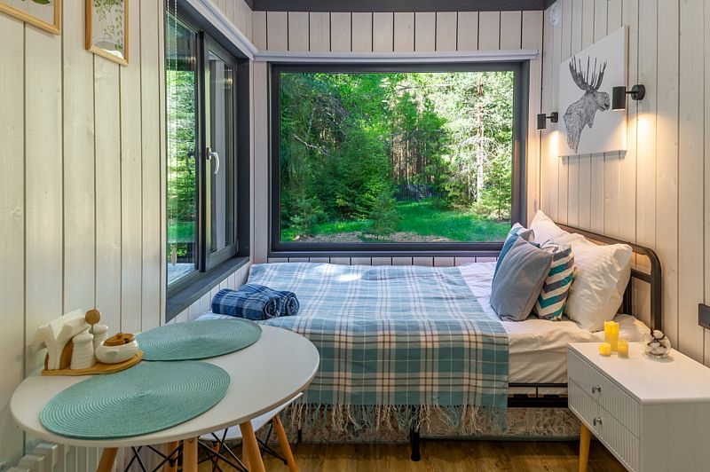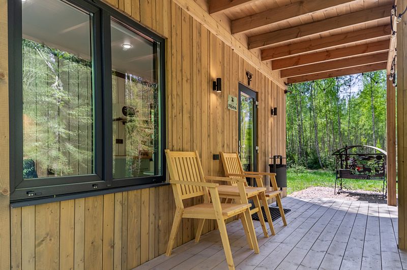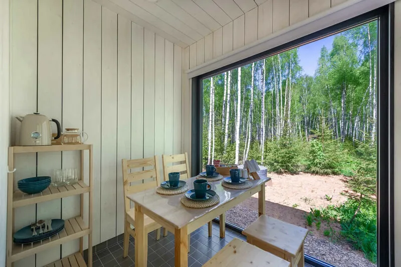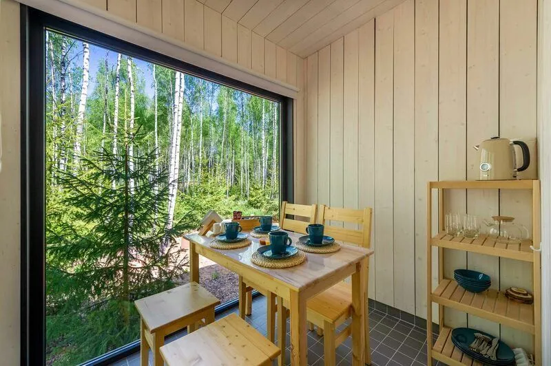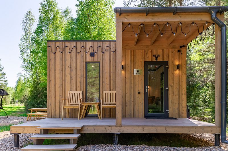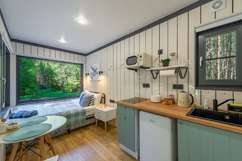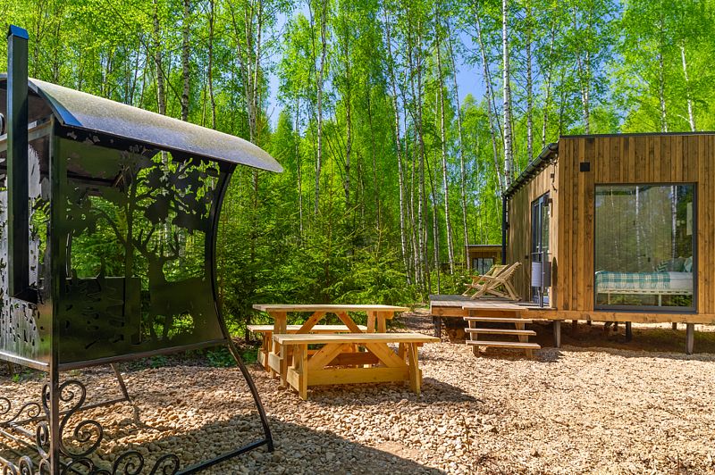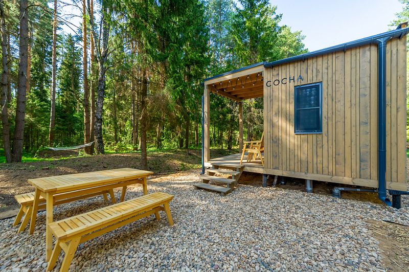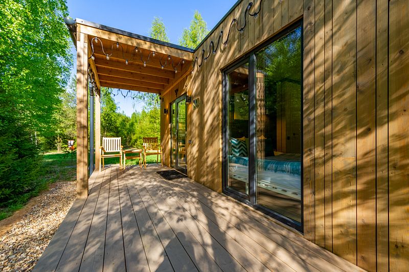 Уютные домики, оформленные в скандинавском стиле, предлагают комфортный отдых со всеми удобствами.