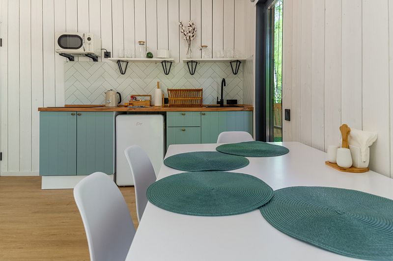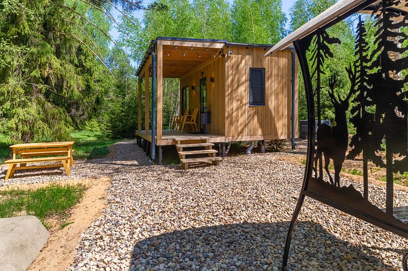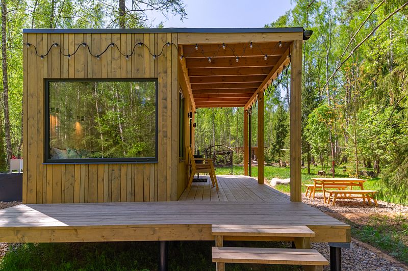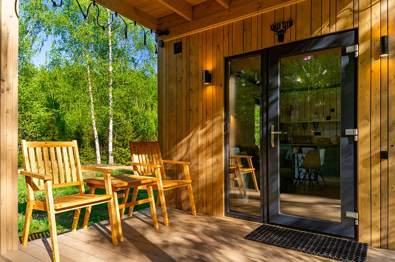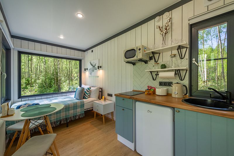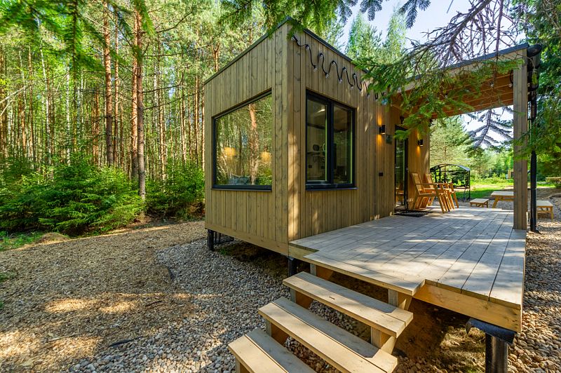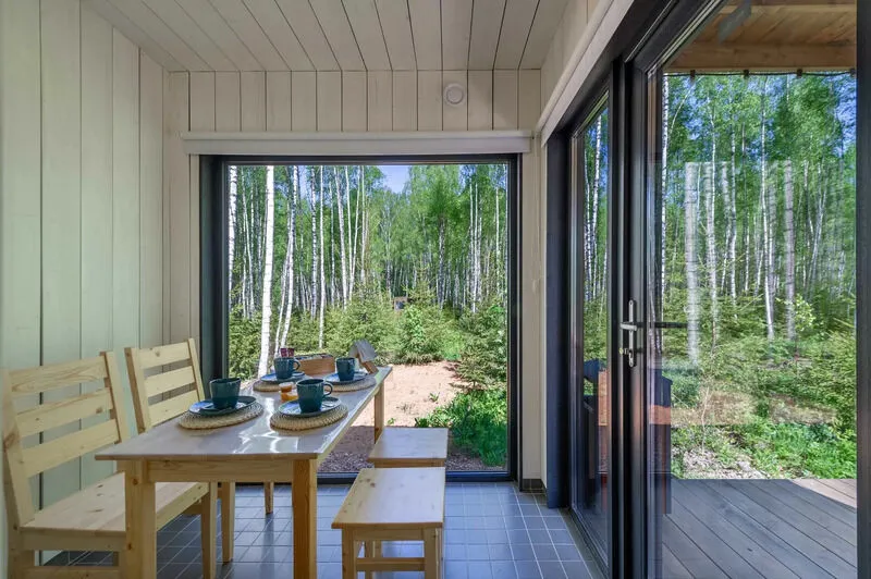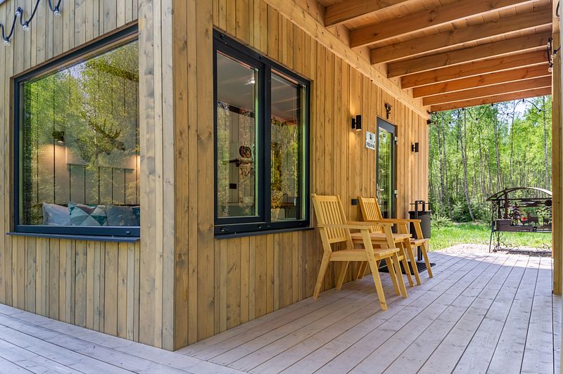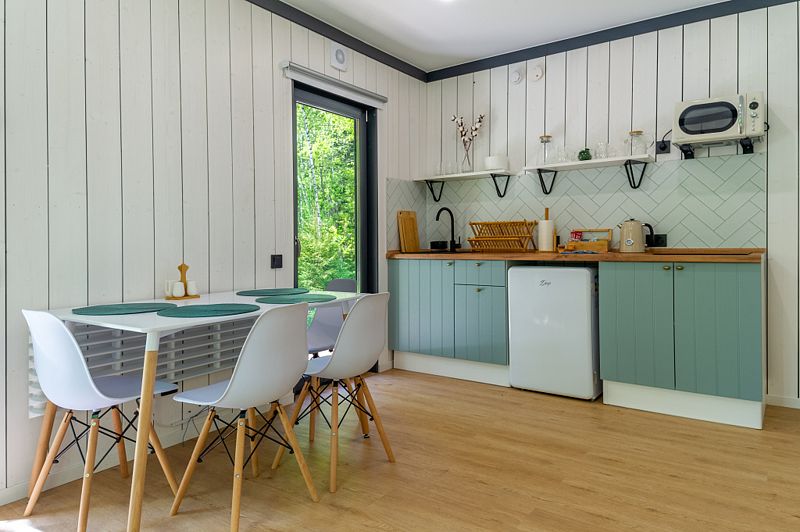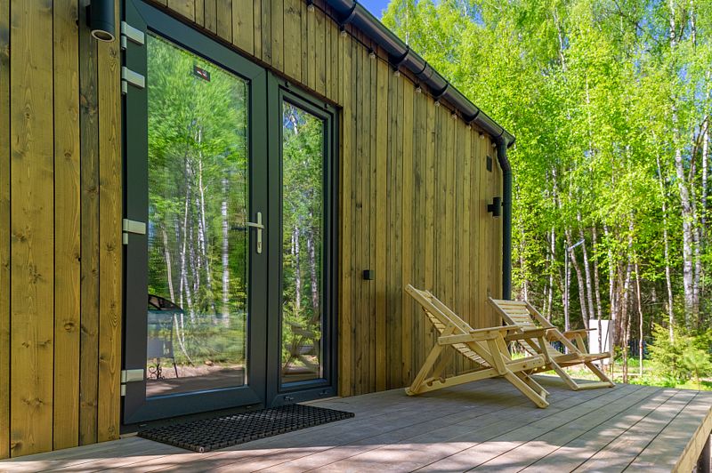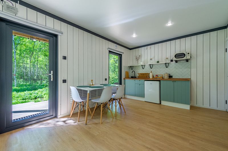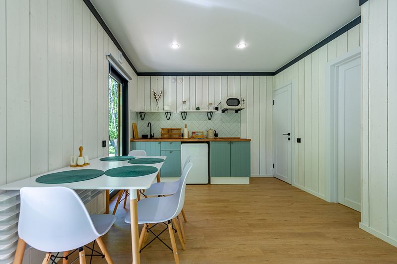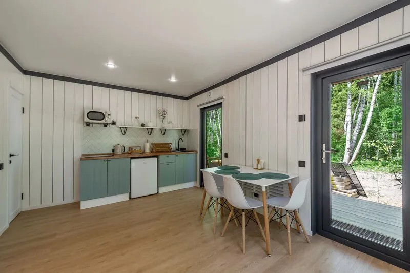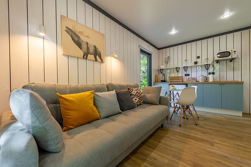 Уютные домики, оформленные в скандинавском стиле, предлагают комфортный отдых со всеми удобствами.
