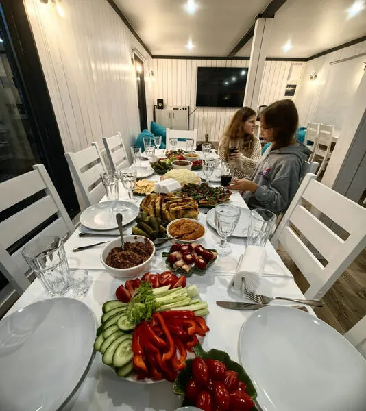 В номере есть полностью оборудованная кухня, ванная комната с необходимыми косметическими средствами, регулируемые батареи и теплый пол, питьевая бутилированная вода, Wi-Fi, собственная зона мангала со столом и скамейками, уличная терраса.
