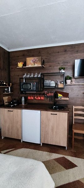 Холодильник, э/плитка, СВЧ, чайник, тостер, мультиварка, кабельное TV, беседка с мангалом и самоваром, столовая и кухонная посуда, постельное белье, полотенца.