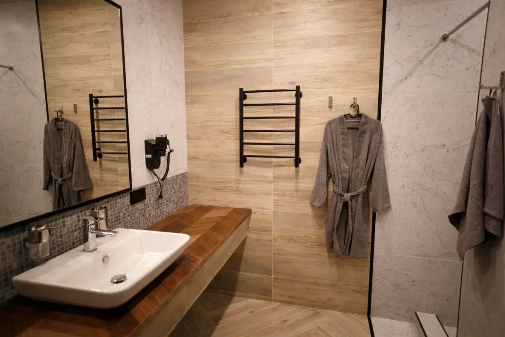 Чтобы вы могли отдохнуть после долгого дня, в номере есть телевизор и мини-бар. Оснащение зависит от выбранной категории номера.